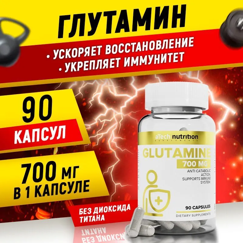 Глютамин aTech Nutrition аминокислота для спортсменов/Пищевая добавка Glutamine Caps/ 700mg/90 капсул информация: