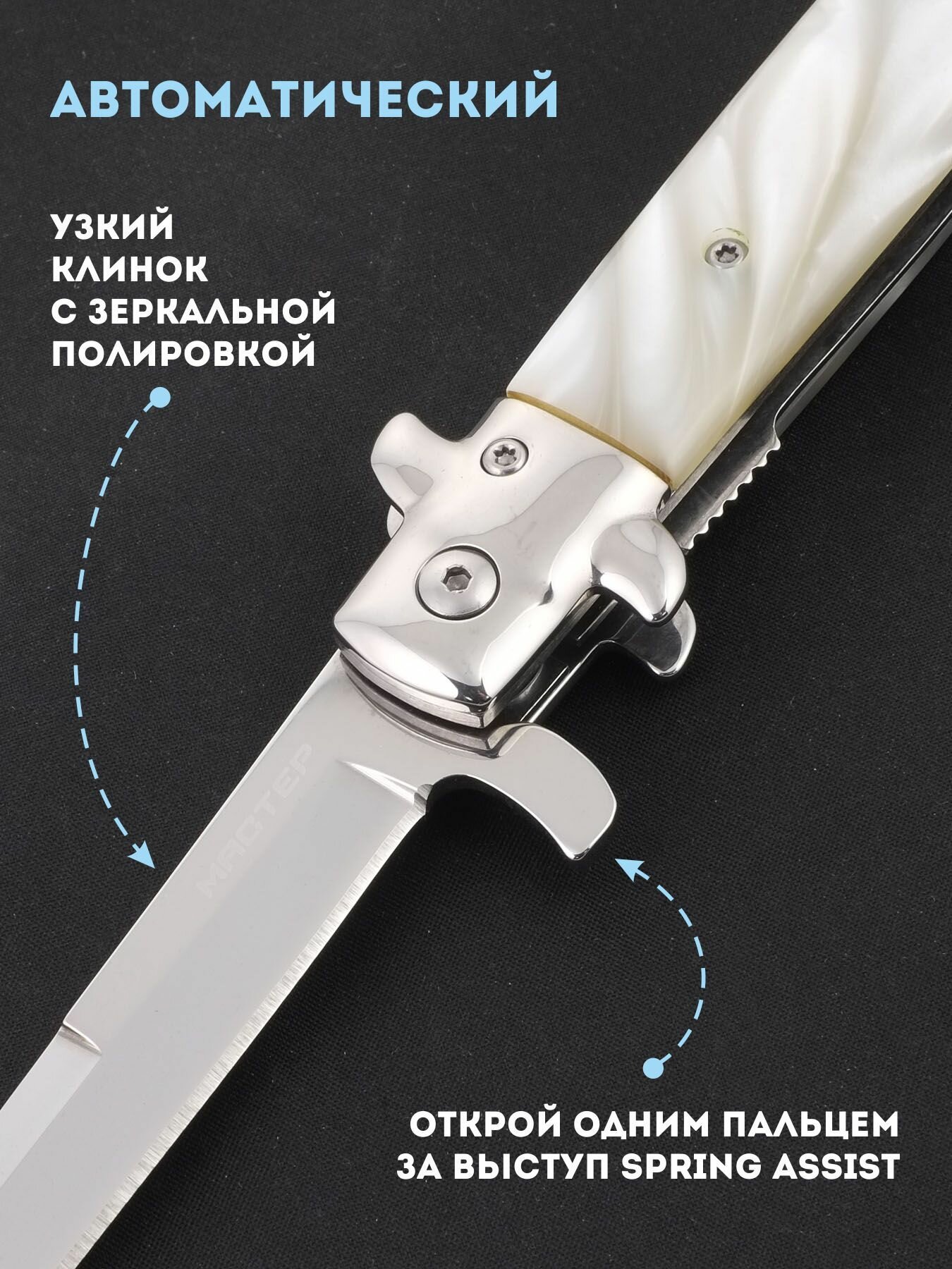 | Особенности | автоматический выброс клинка / возможность использования одной рукой |