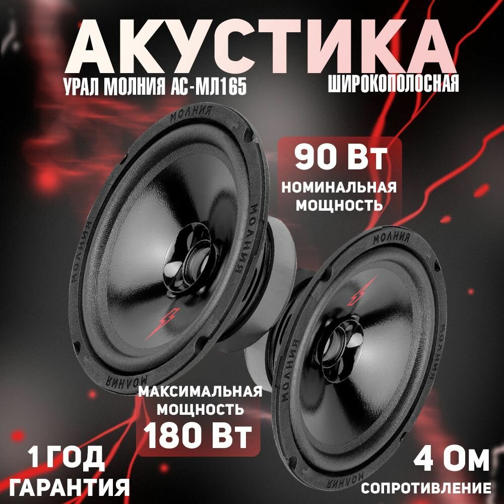 Колонки Урал "Молния" АС-МЛ165, широкополосные, 2 шт., 16,5см, 90Вт информация: