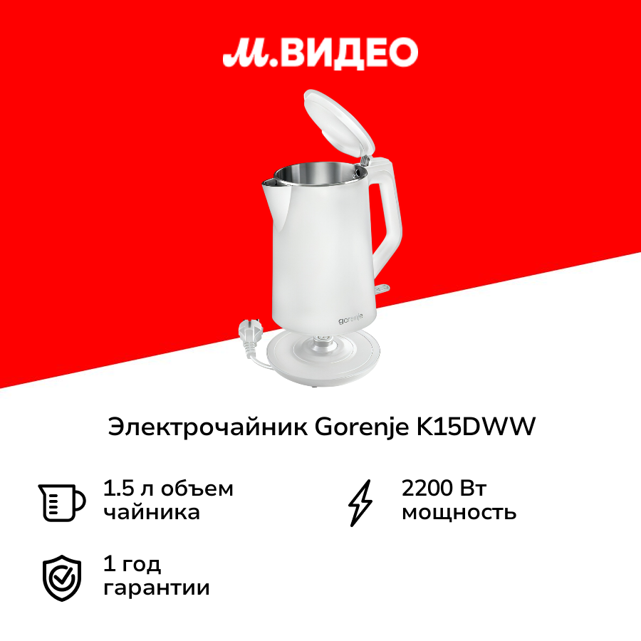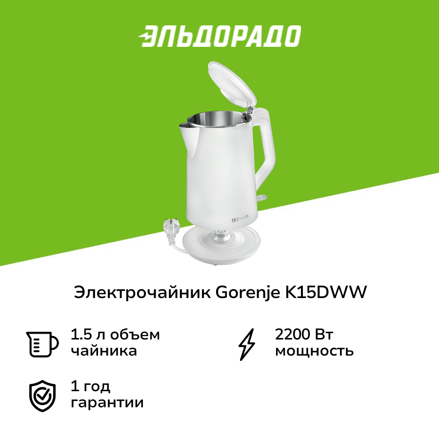 Чайник Gorenje K15DWW 1.5L информация: