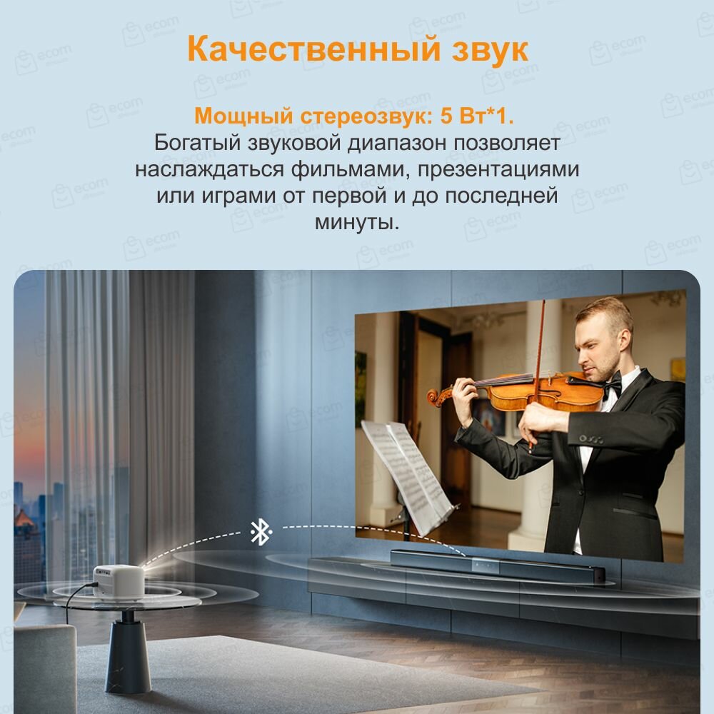 Мини проектор 4К с высоким разрешением 1920х1080 для фильмов и мультфильмов