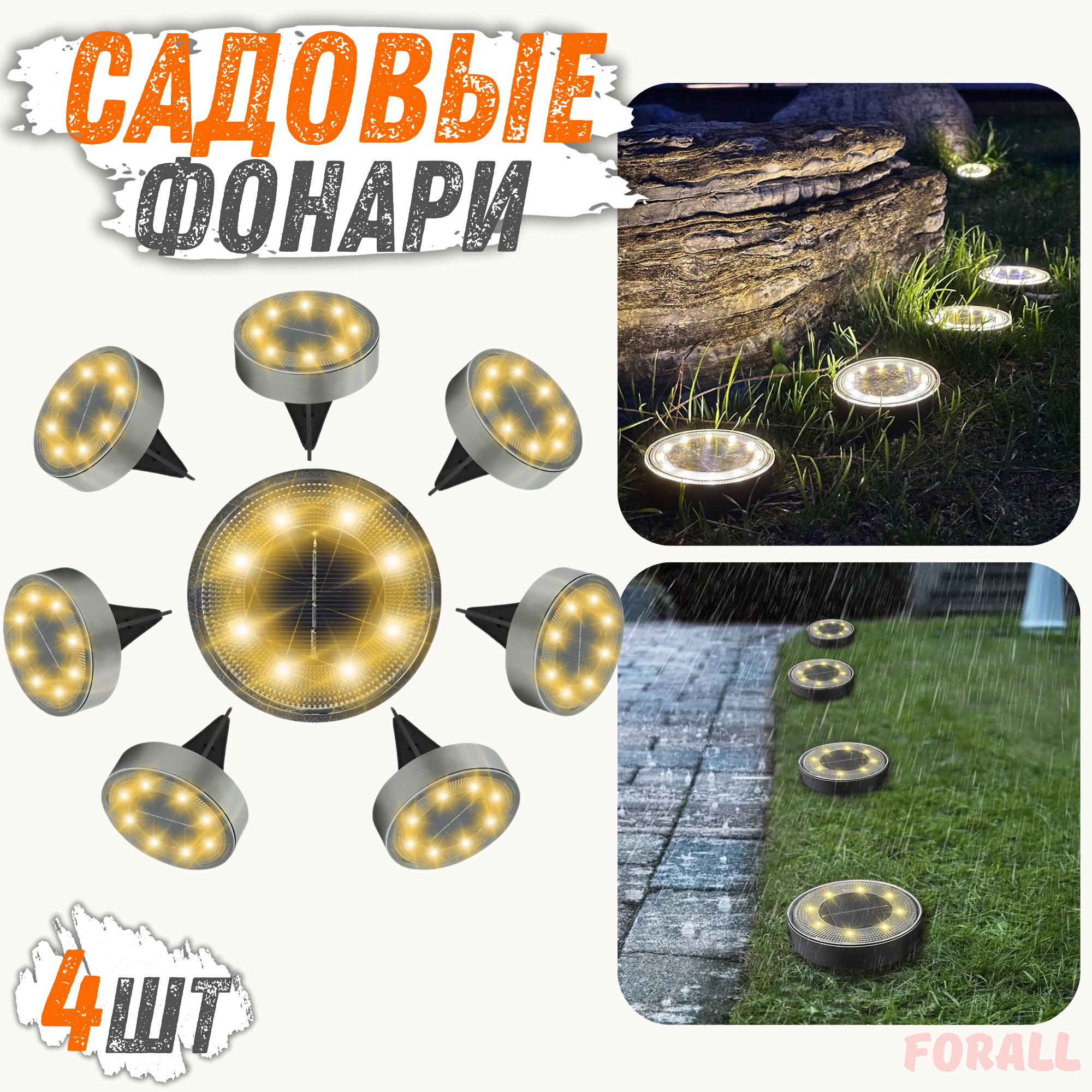 10 цен на Садовые светильники ForAll на солнечной батарее, теплый свет, влагозащита, комплект 4 шт, для освещения сада, дорожек и клумб