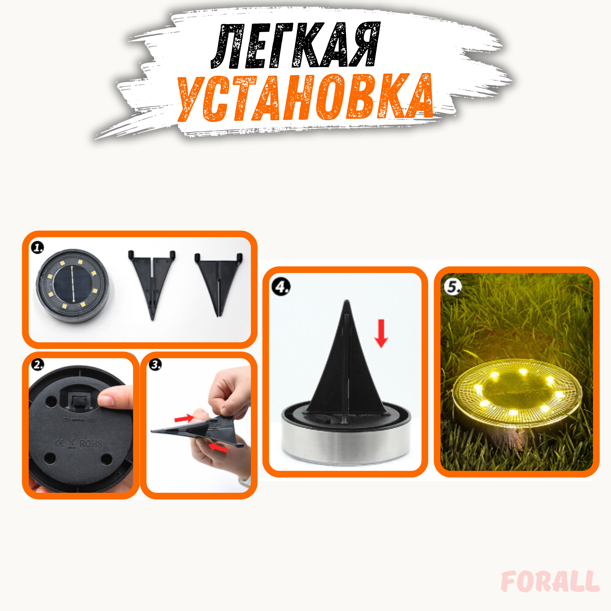 Садовые светильники ForAll на солнечной батарее, теплый свет, влагозащита, комплект 4 шт, для освещения сада, дорожек и клумб информация: