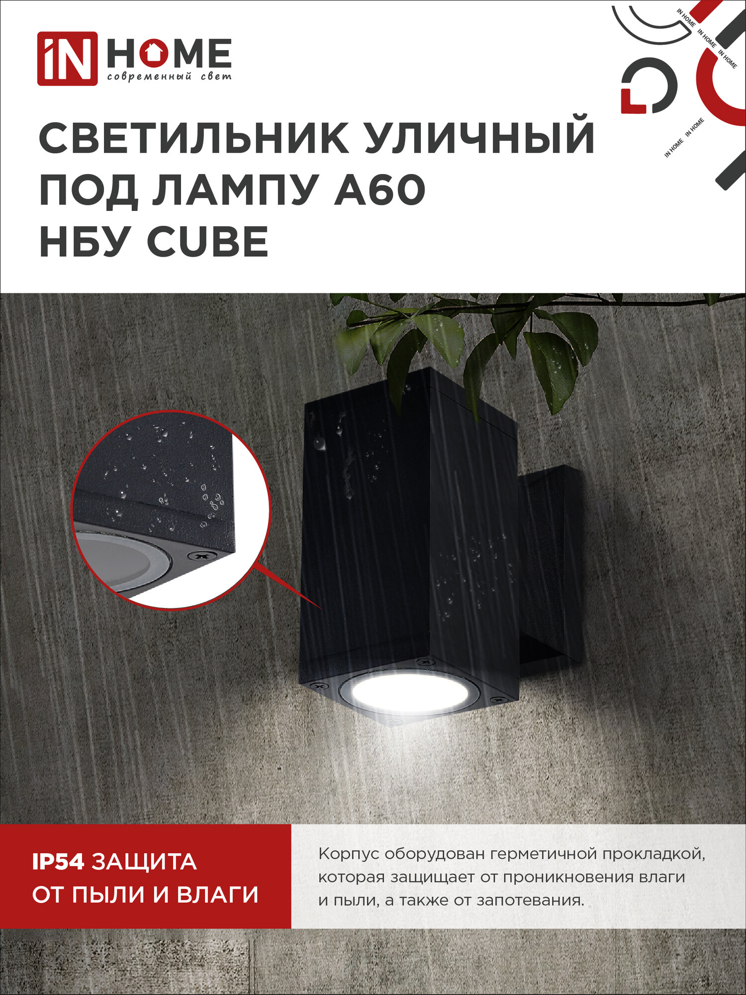 Светильник НБУ CUBE-1хA60-BL E27 IP65 уличный настен. односторон. под лампу 1хA60 алюм. черн. IN HOME 4690612045146 1 111 ₽