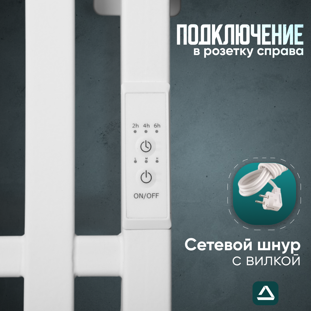 Полотенцесушитель электрический TermoPrime 1200*205мм белый 4 крючка, 4 секции подключение справа информация: