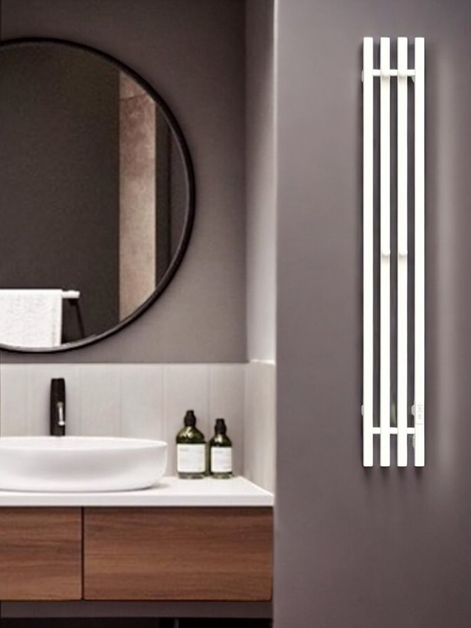 Полотенцесушитель дизайнерский электрический, профильный BAU Stella 8х80, 2 коллектора, 3 крючка (Белый DB-0071)