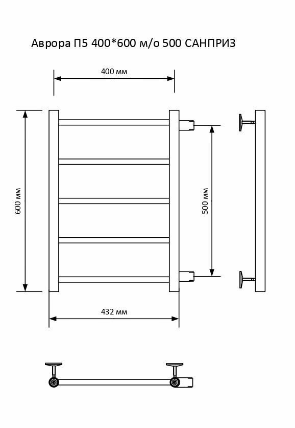 Полотенцесушитель Аврора П5 400*600 м/о 500 черный матовый санприз информация: