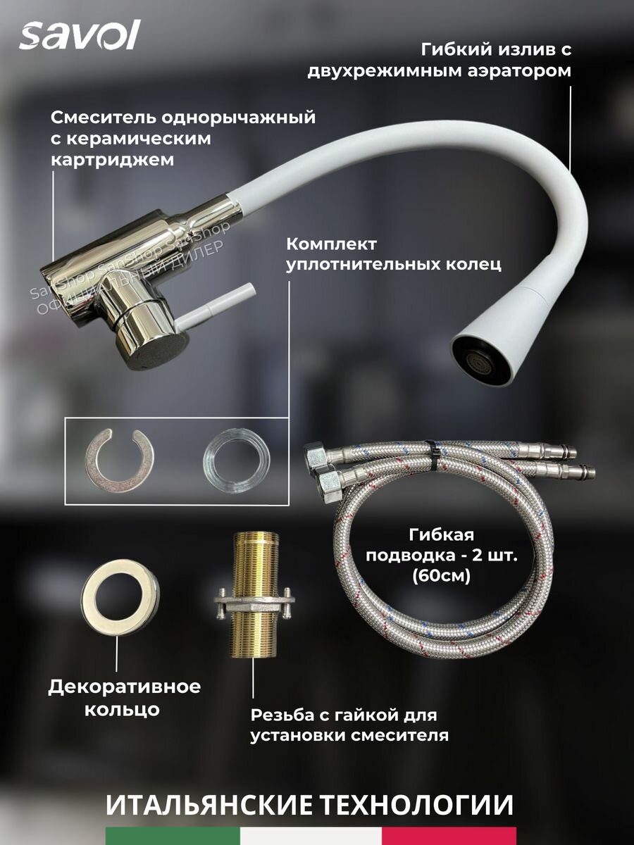 Смеситель для кухни с гибким изливом и двухрежимной насадкой Savol S-3002WM 3 441 ₽