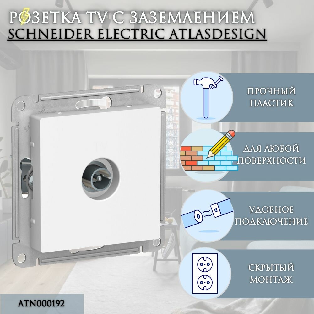 Розетка телевизионная Schneider Electric AtlasDesign одиночная. Белая информация: