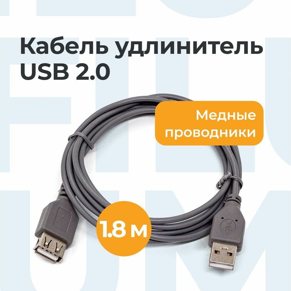 Кабель Filum удлинитель USB A male - USB A female, 1.8 м, серый /FL-C-U2-AM-AF-1.8M/ информация: