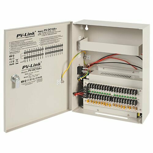 Блок бесперебойного питания (ИБП 12 В) стабилизированный PV-Link PV-DC10A+, DC 12 В, 10 А, 18 выходов, для видеонаблюдения, охранных систем, резерв питания информация: