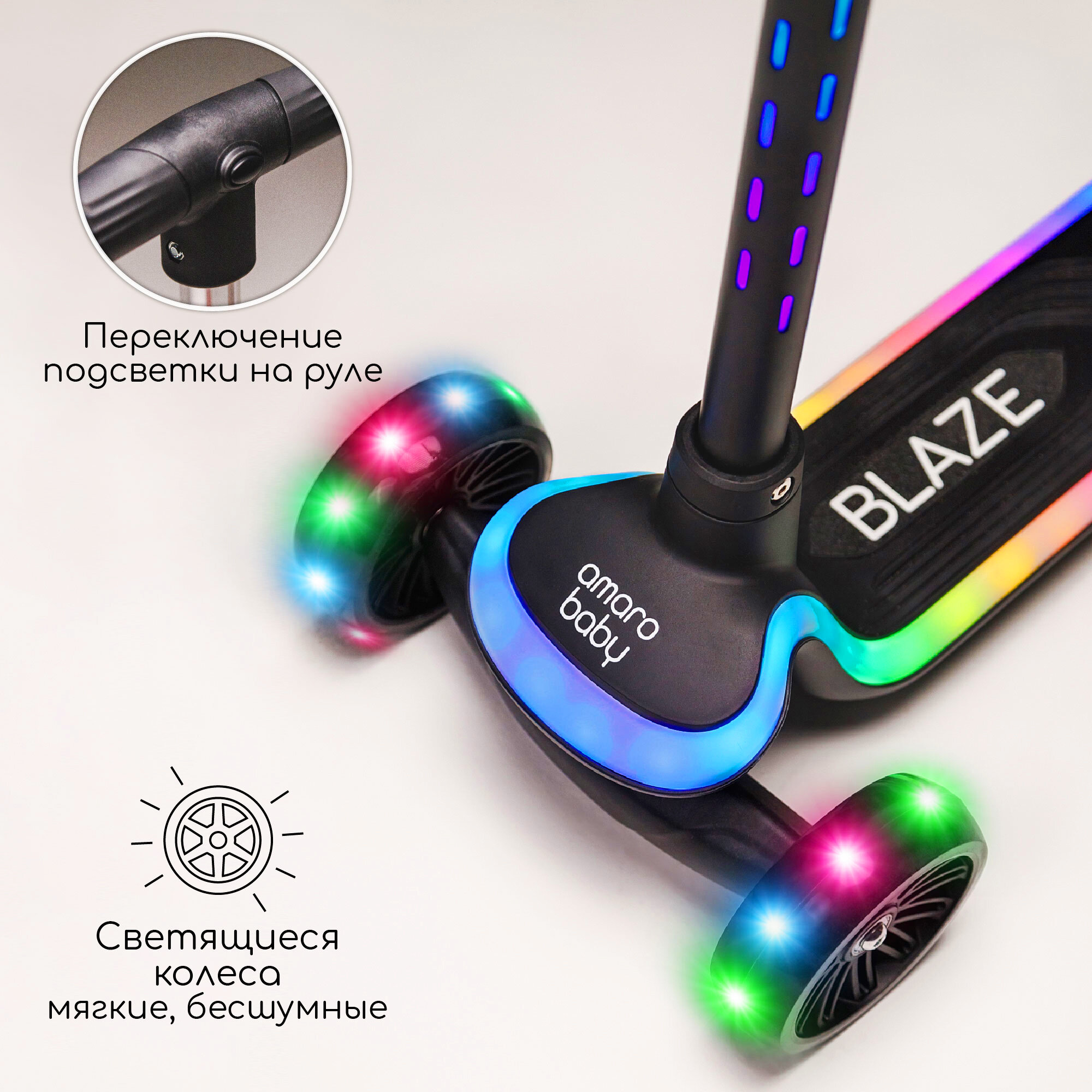 Самокат (кикборд) Amarobaby "Blaze", детский, трёхколёсный, с амортизатором, светящийся, до 50кг, черный информация:
