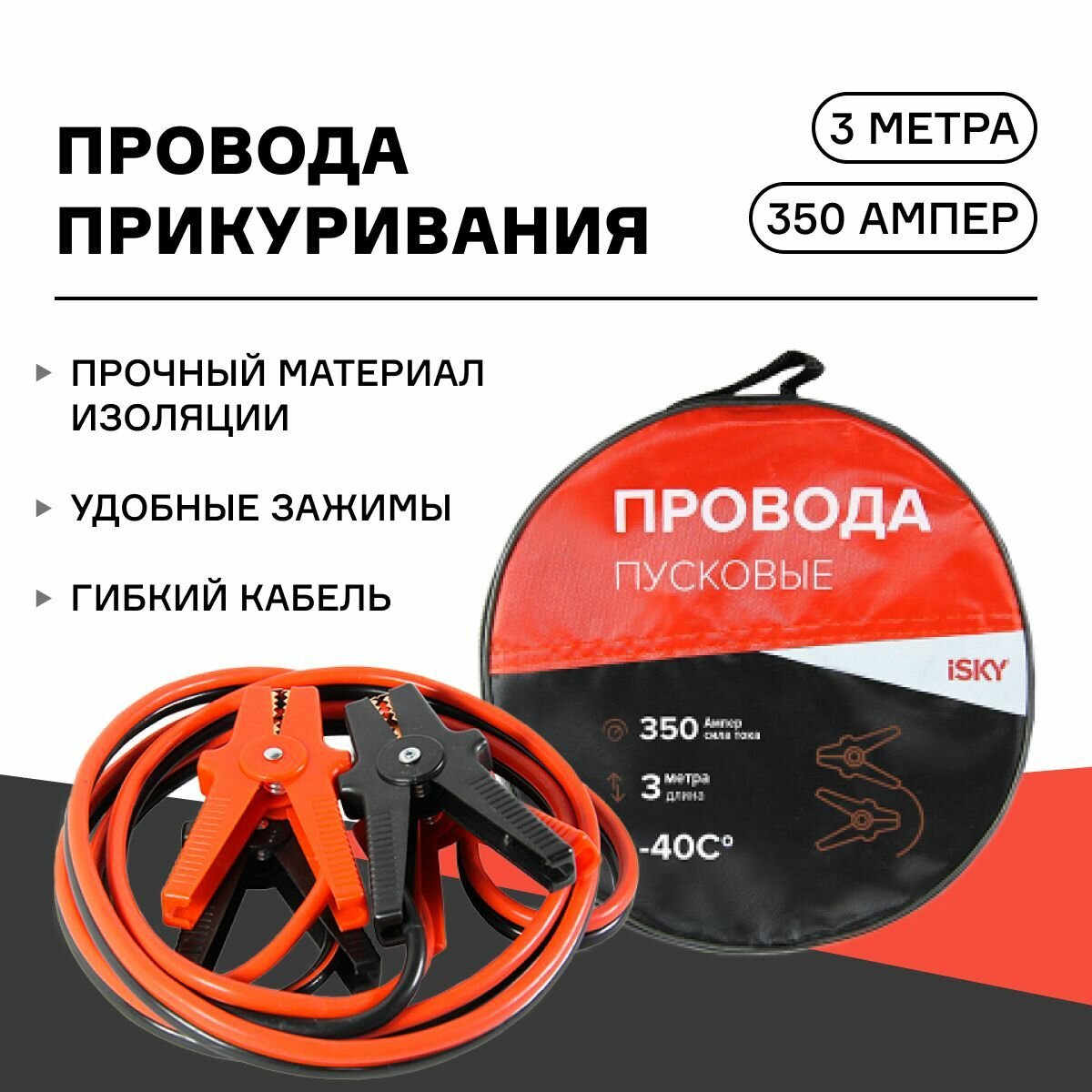 Отзывы на Провода прикуривания iSky, 350 Амп., 3 м, в сумке арт. iJL-350