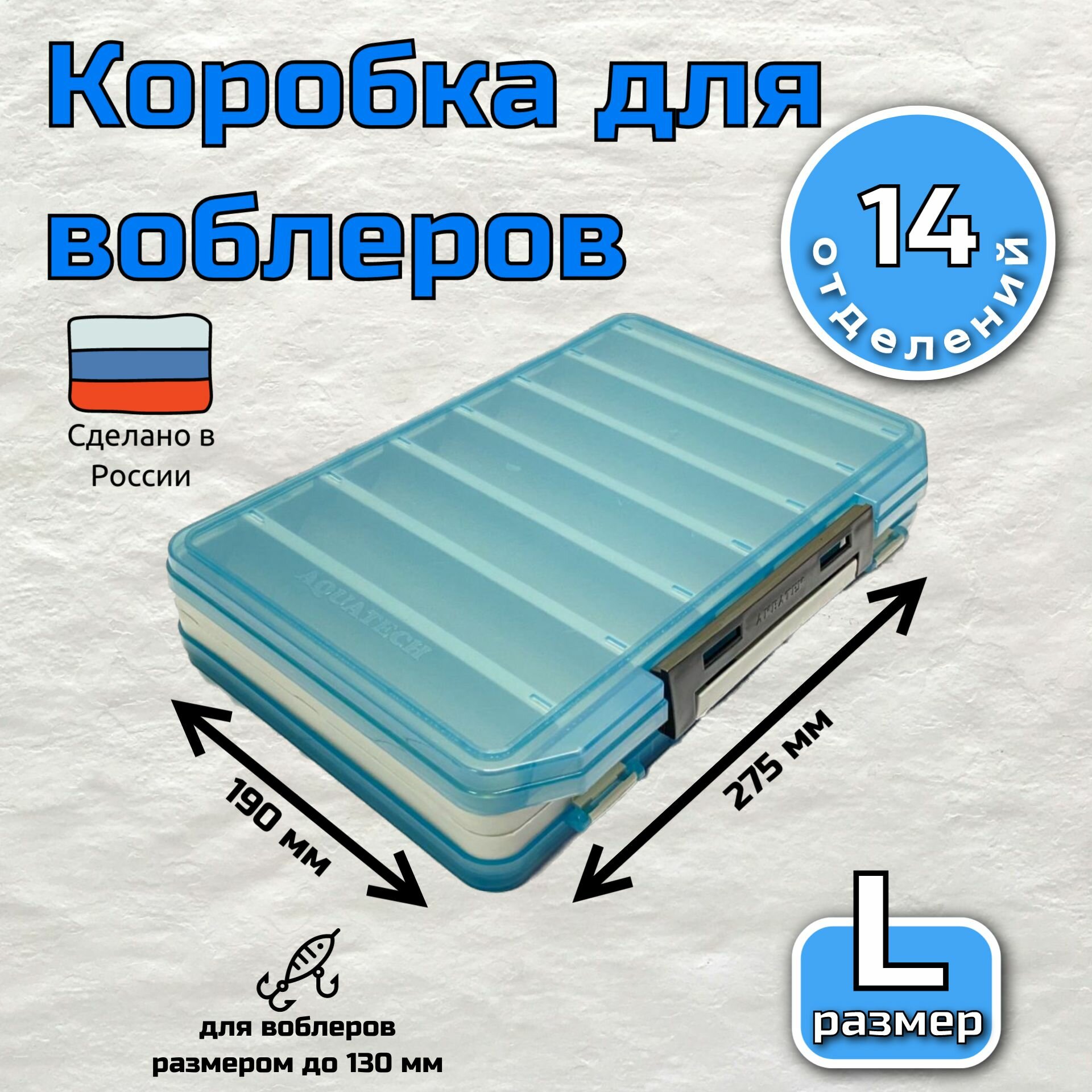 Коробка для воблеров двухсторонняя Aquatech 17500 (275х195х55мм) голубая