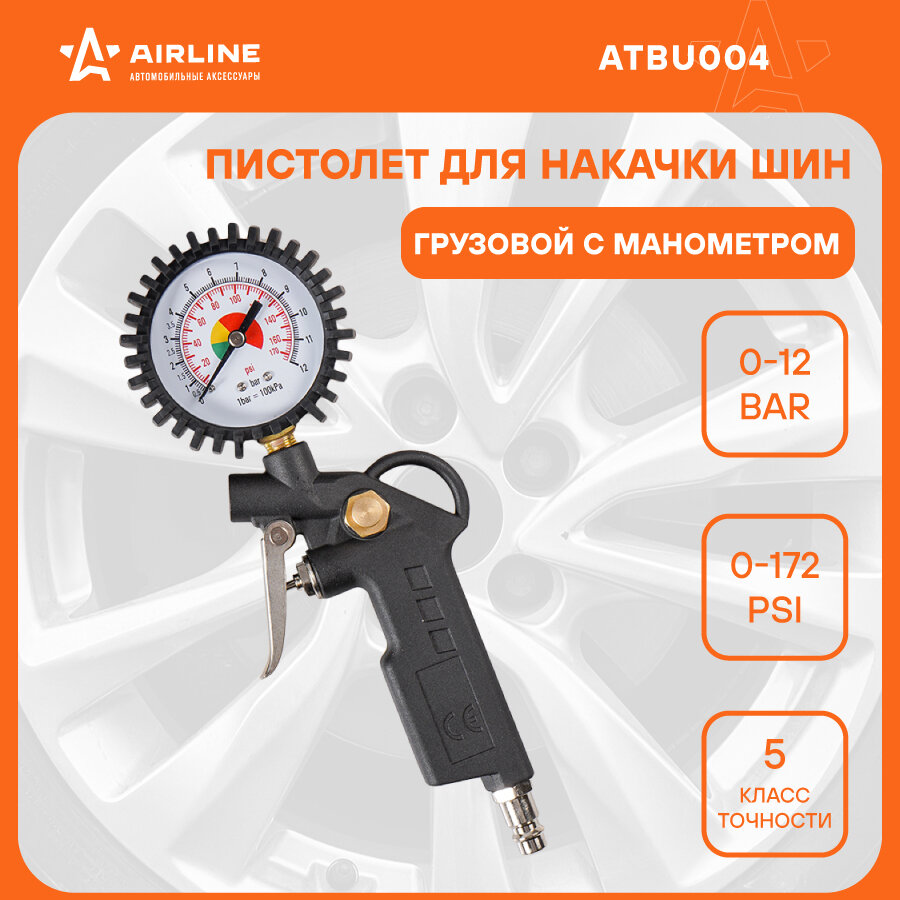 Пистолет для накачки шин грузовой с манометром 12 АТМ ATBU004 AIRLINE