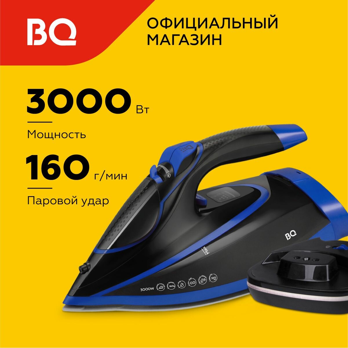 Отзывы на Беспроводной утюг BQ SIC1003 Черно-синий с керамической подошвой. Мощность 3000Вт. Вертикальное отпаривание