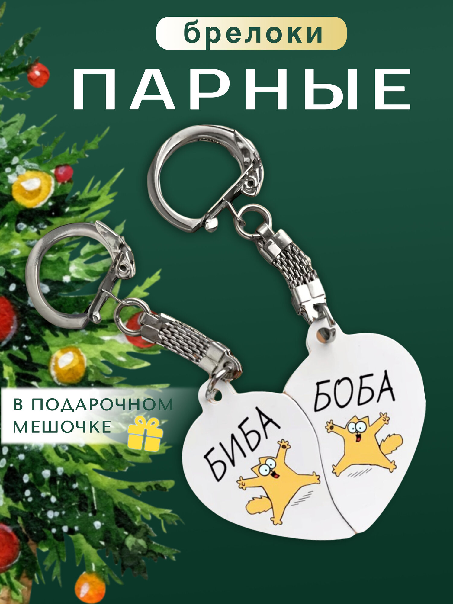 Брелок для ключей парный на сумку рюкзак девушке мужчине парню в подарок на новый год "Биба и Боба" информация: