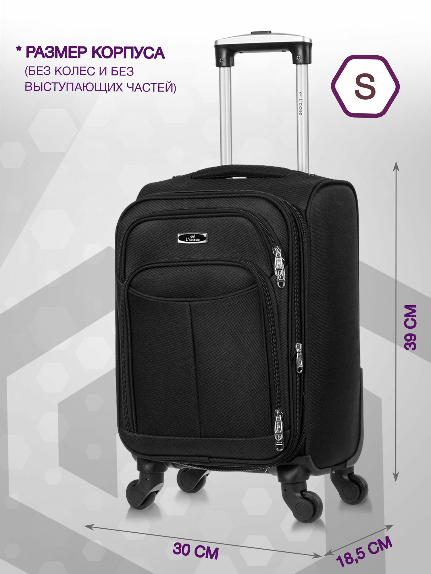 Чемодан на колесах Lcase AMSTERDAM, Черный. Маленький размер S, тканевый, ручная кладь, 52 см, 40 л. Дорожный чемодан на колесиках для путешествий и поездок. 4 700 ₽