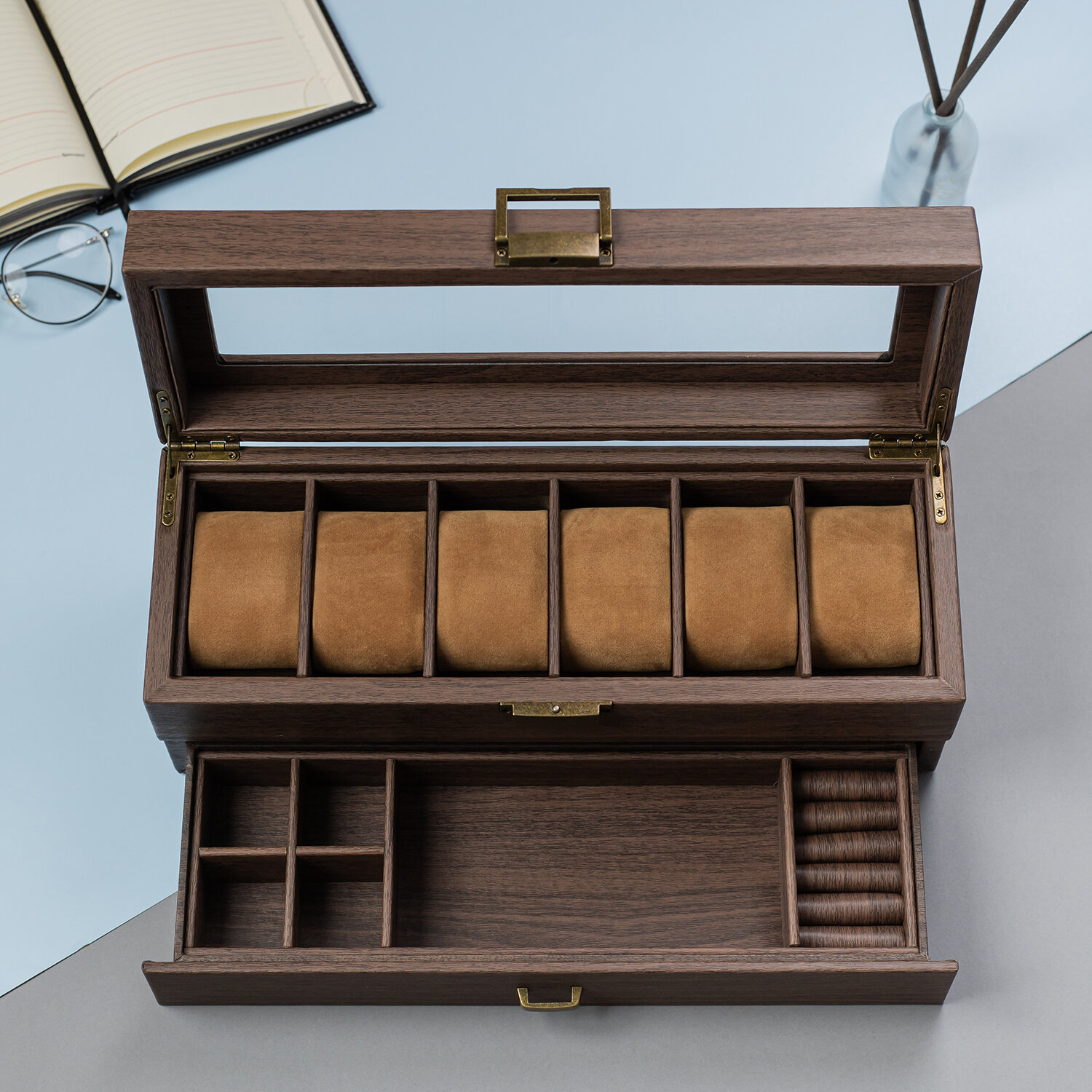 | Особенности | закрывается на замок / отделение для очков / отделение для украшений / стеклянная крышка |