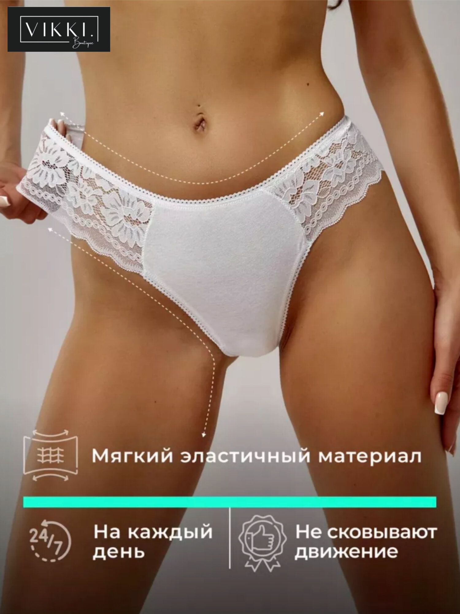 Набор трусы женские кружевные стринги хлопок 5 штук 40-42 620 ₽