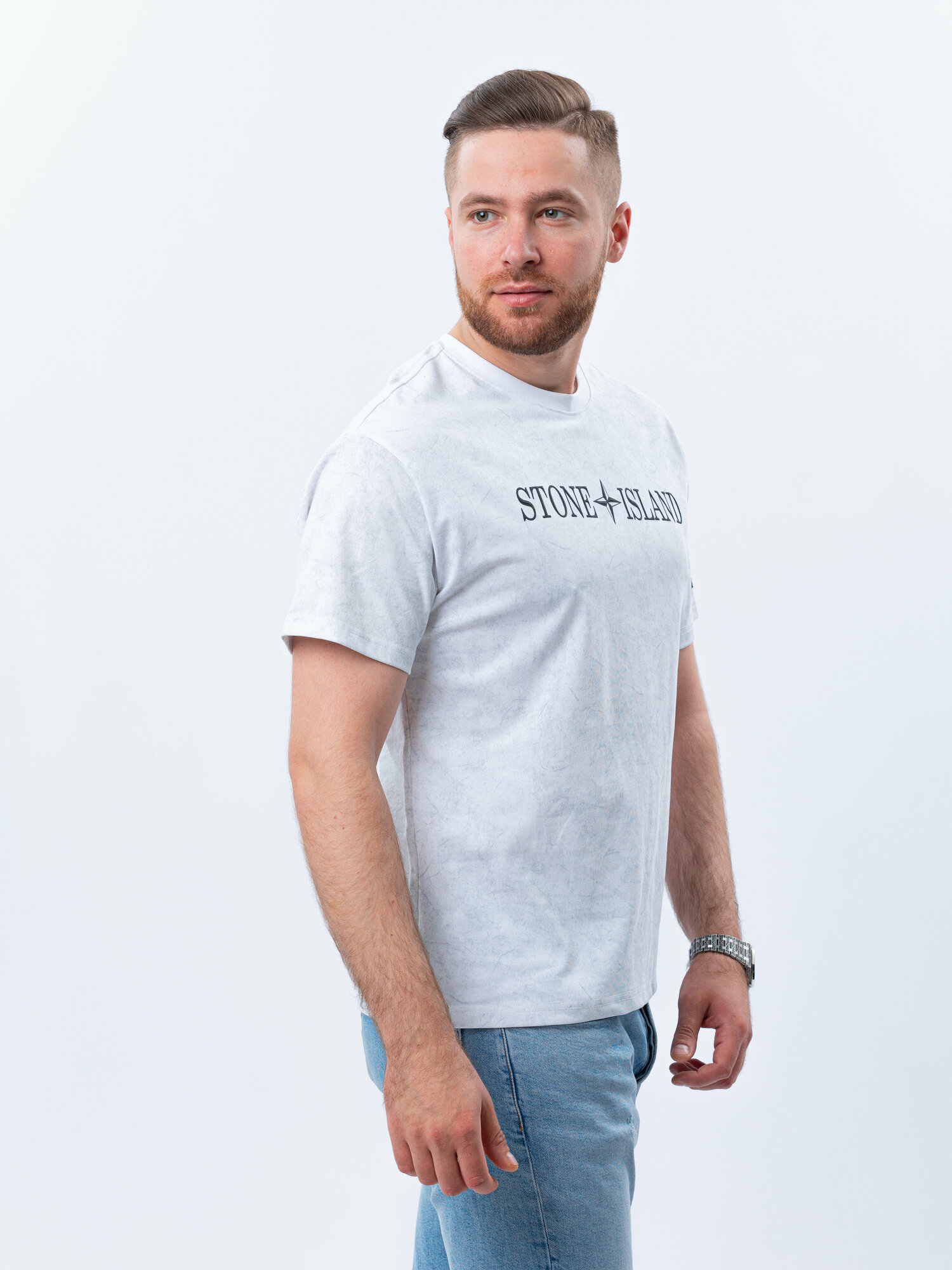 Футболка мужская белая с серым принтом 746 2 размер L (48) STONE ISLAND