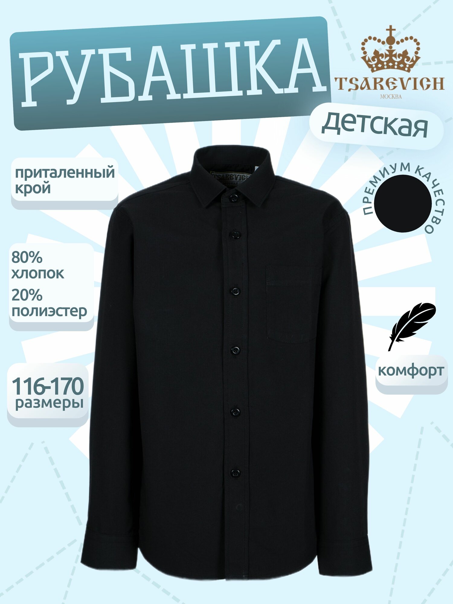 Школьная рубашка Tsarevich, размер 140-146, черный 1 306 ₽