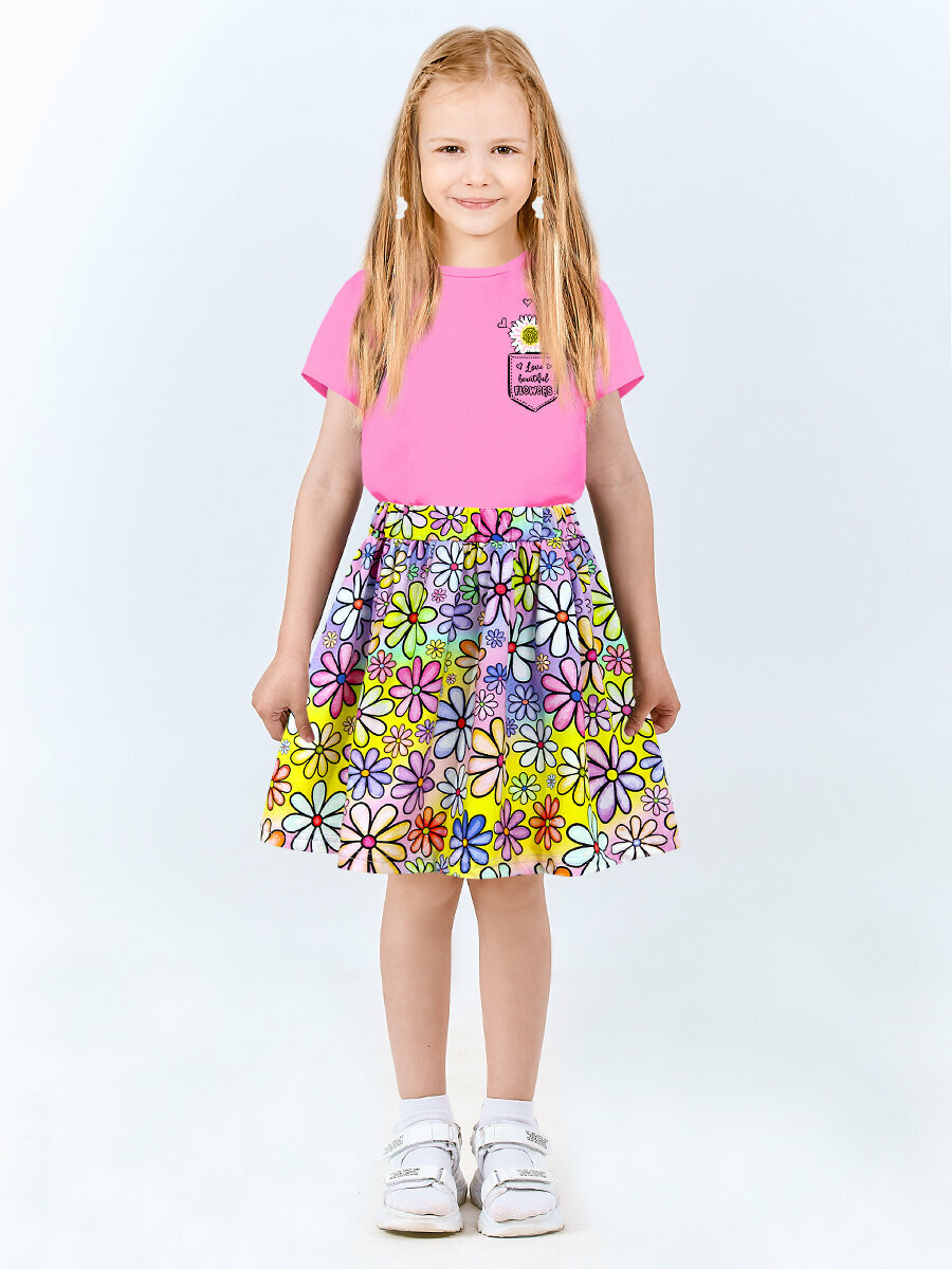 Юбка детская в садик KETMIN, размер 128, Ромашки неон информация: