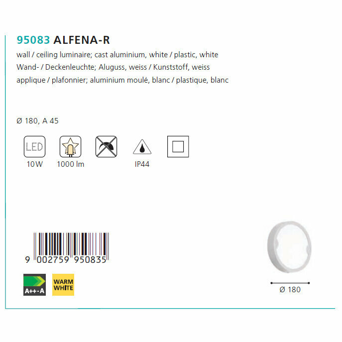 95083 Уличный светодиодный настенно-потолочный светильник EGLO Alfena-r