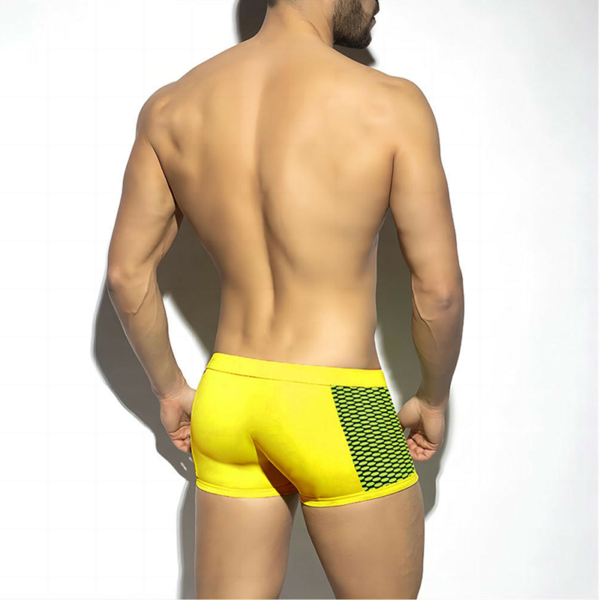 Отзывы на Желтые мужские плавки-боксеры с принтованными вставками по бокам