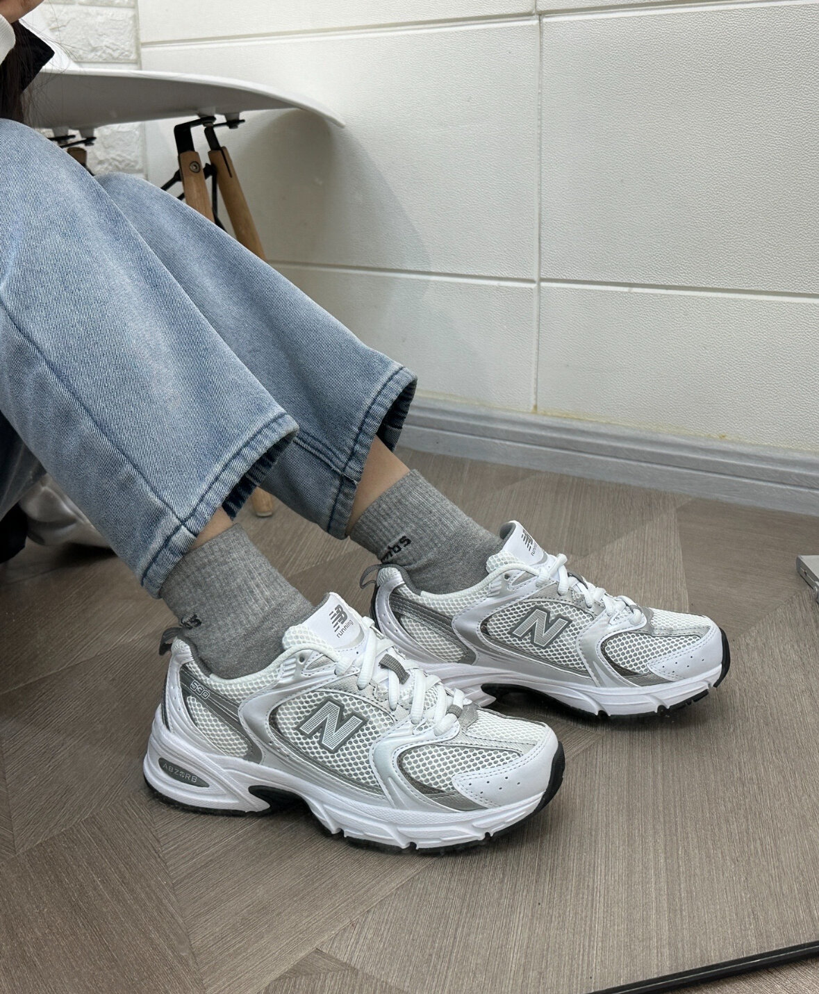 Кроссовки New Balance "530" - белые с серебряными вставками 36 eu
