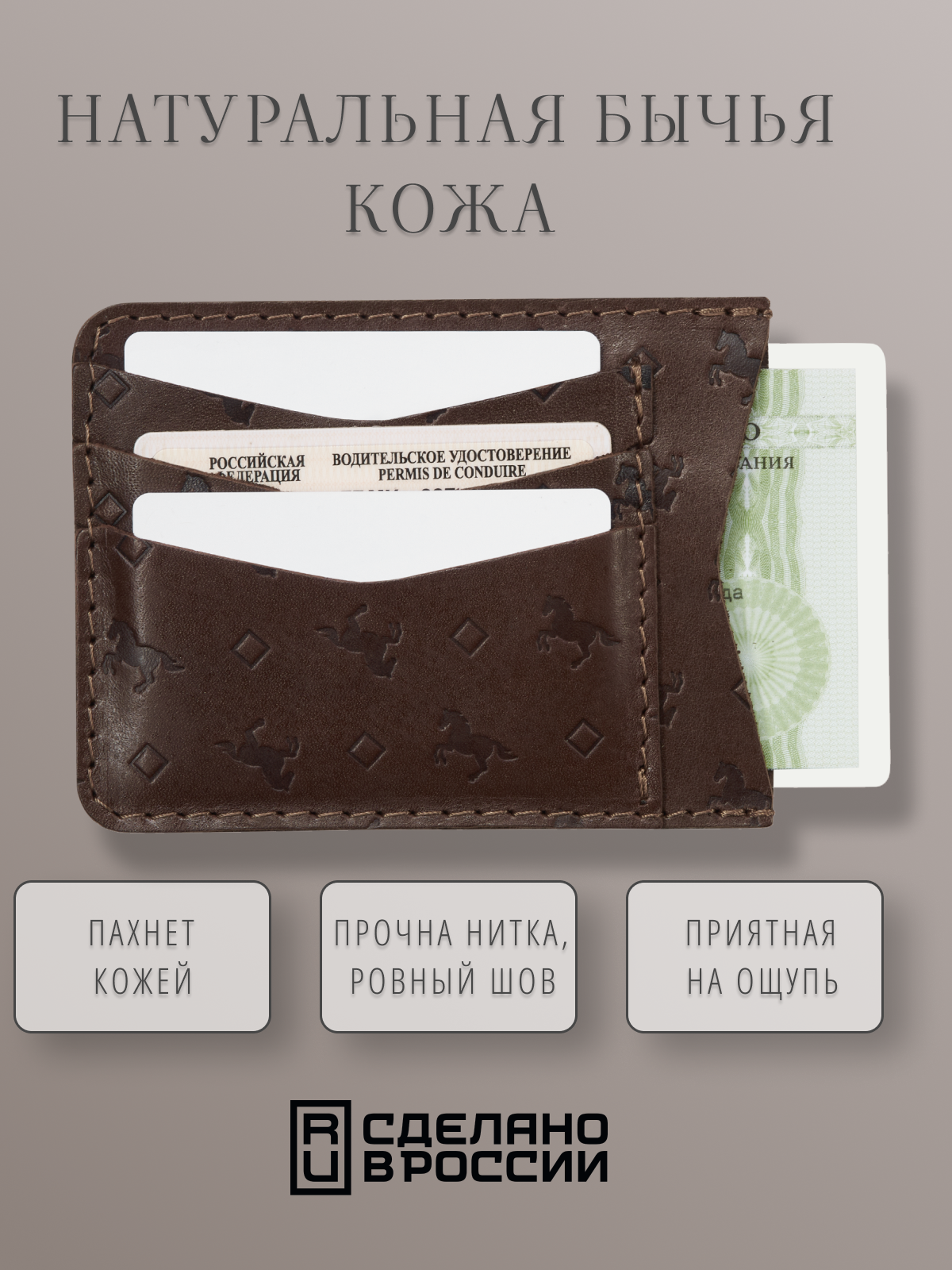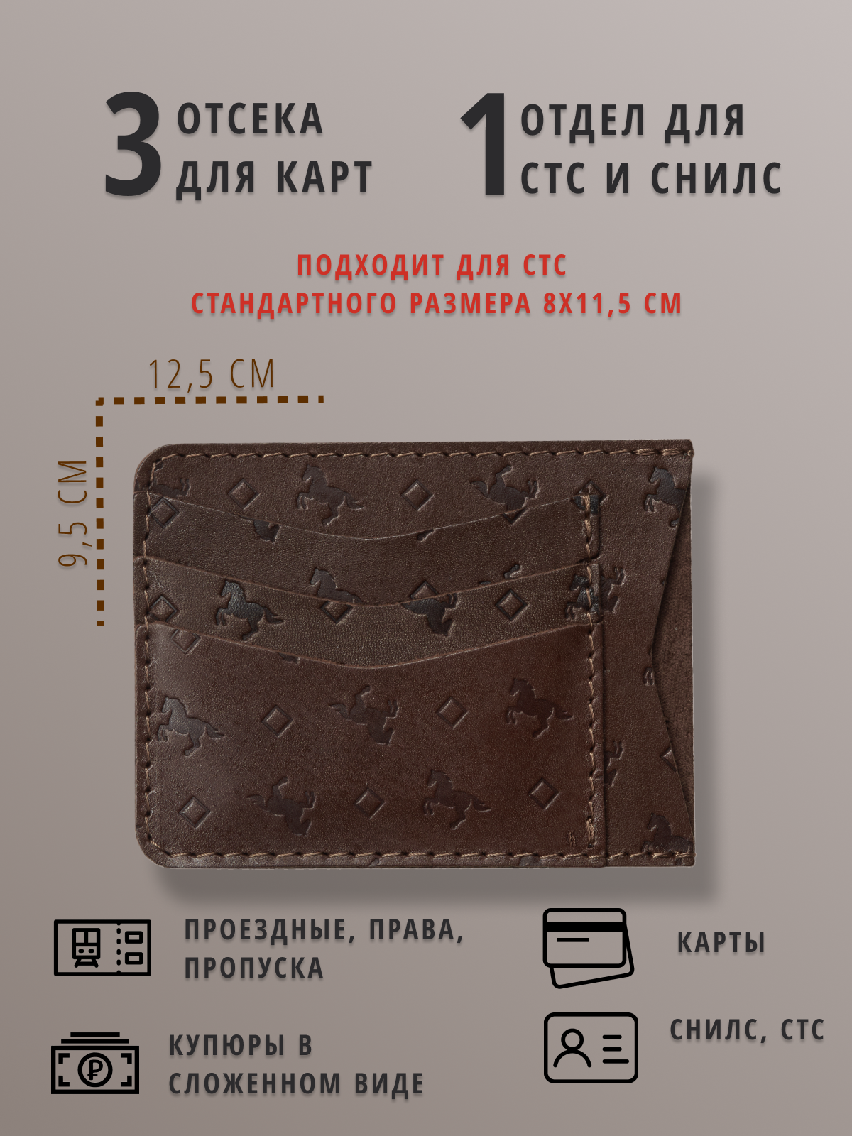 Кожаный картхолдер для автодокументов и карт с тиснением, коричневый 525 ₽