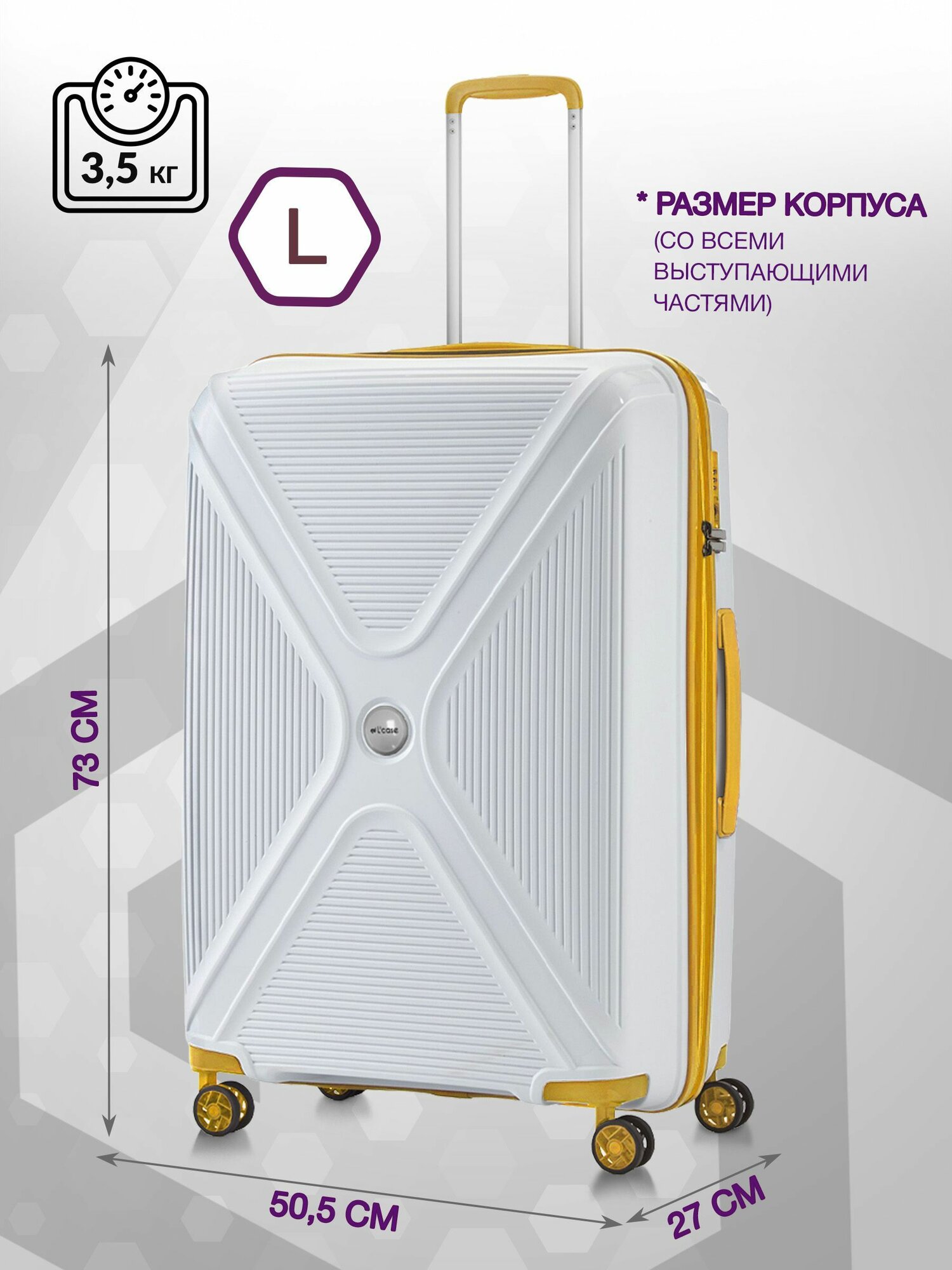 Чемодан на колесах M средний, белый - Чемодан полипропилен, семейный Lcase