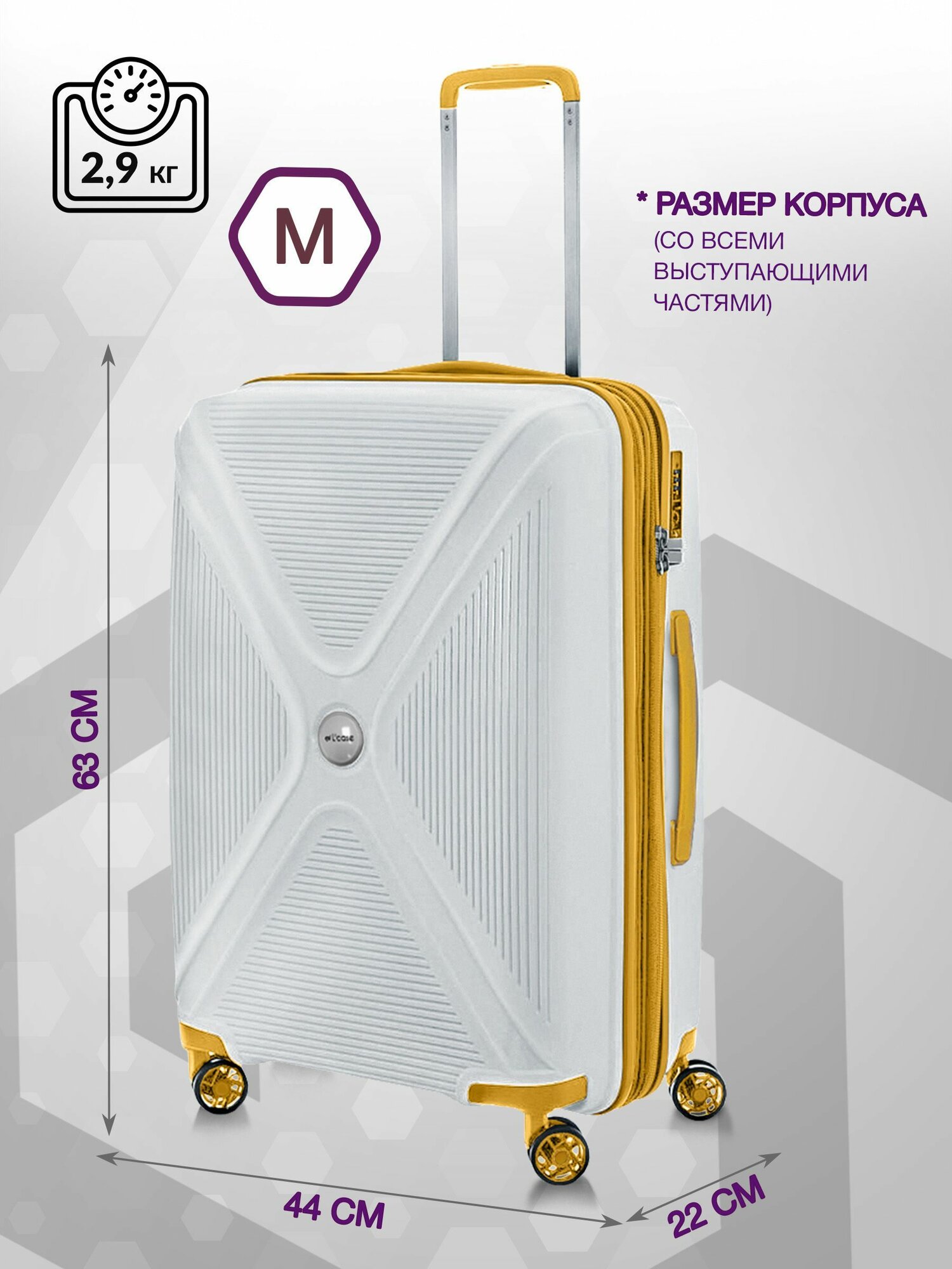 Чемодан на колесах средний М полипропилен пластиковый Berlin, дорожный, ударопрочный, кодовый замок, 63см, 50л информация:
