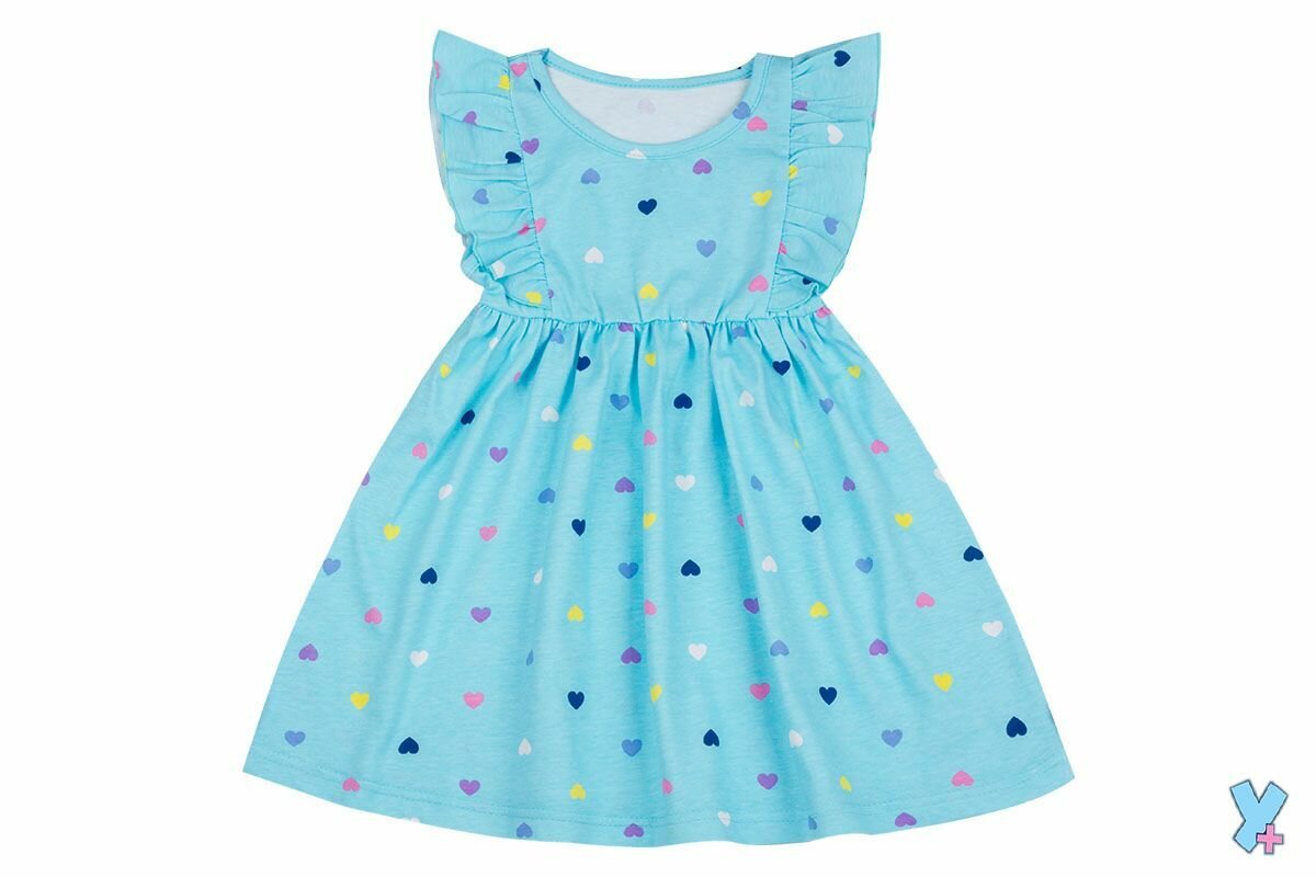 Платье детское для девочки летнее легкое с коротким рукавом голубое
