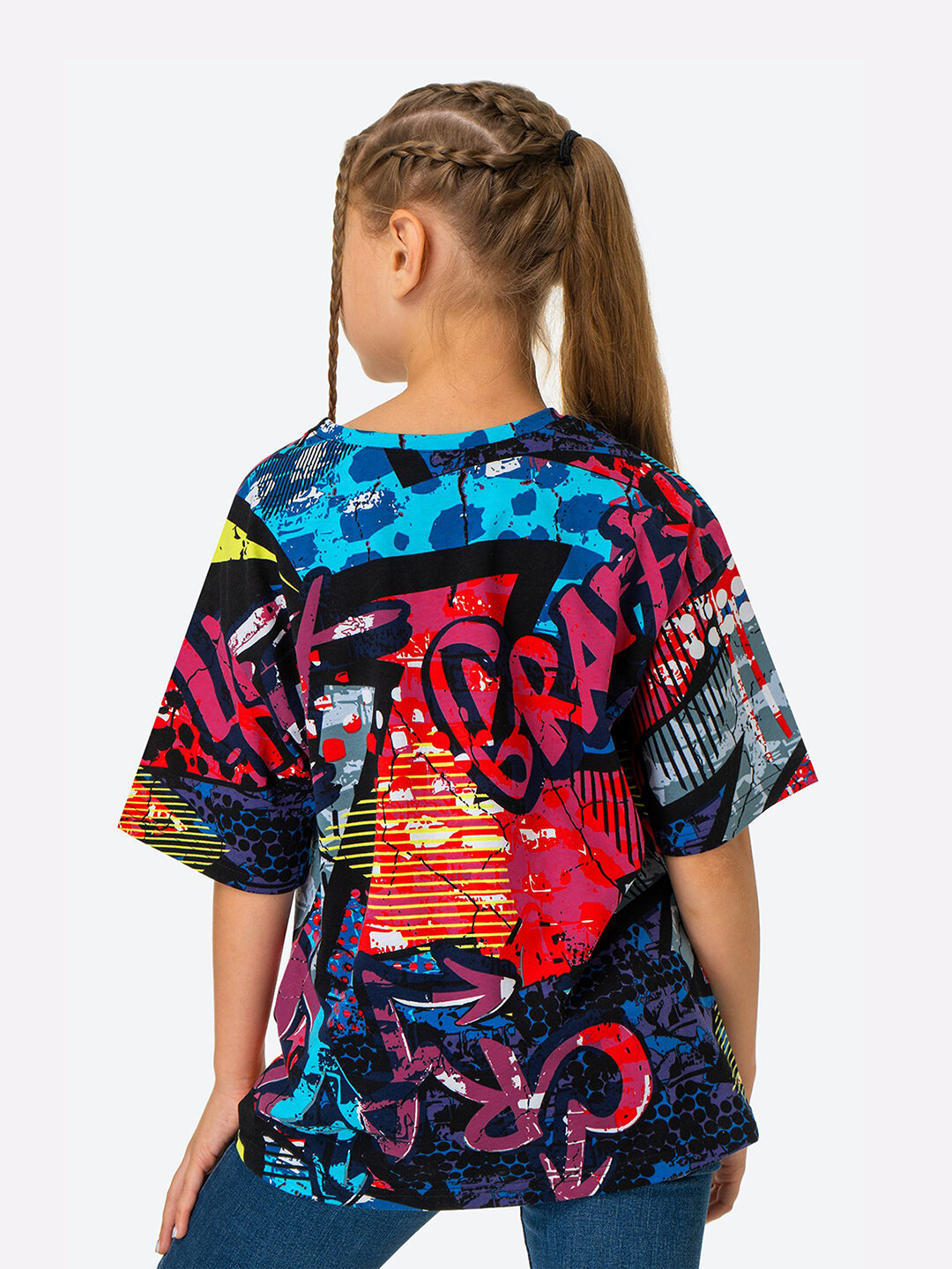10 цен на Футболка детская оверсайз подростковая с принтом HappyFox HF0178SP граффити 152