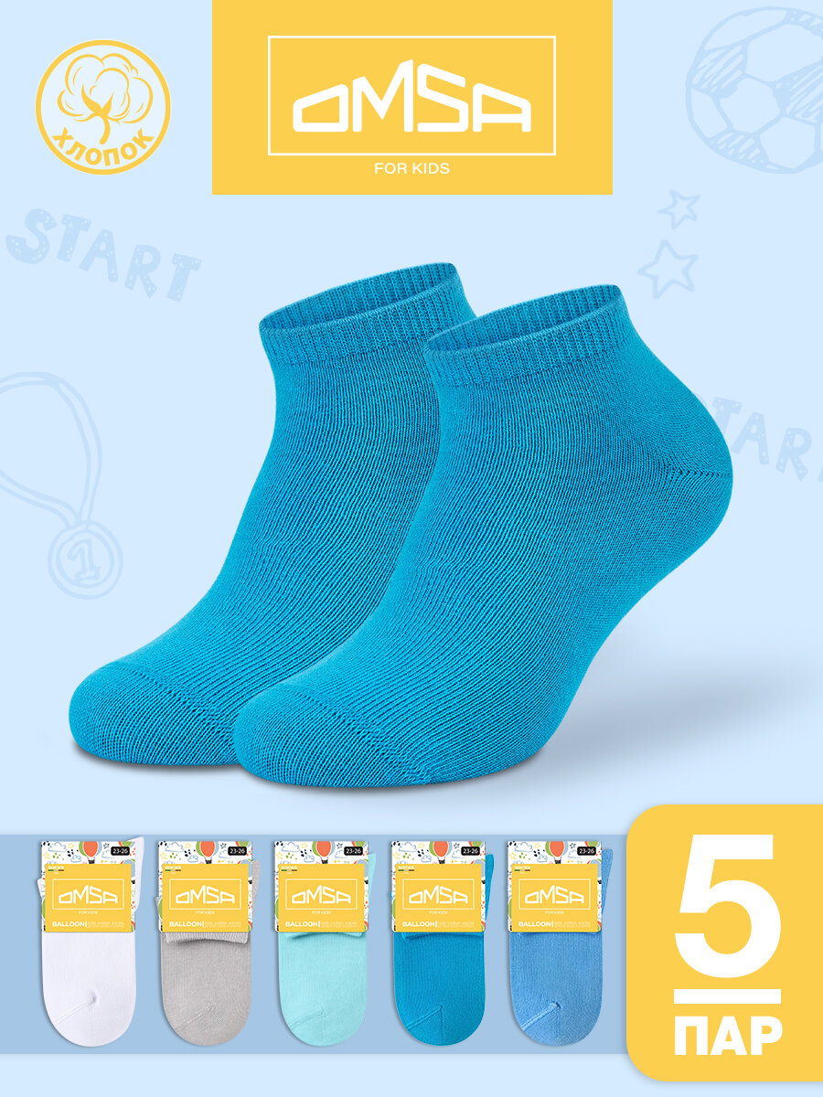 Носки детские OMSA kids Calzino 21C02, короткие, цветные, хлопок , набор 5 пар, цвет Bianco/Grigio Chiaro/Azzurro/Blu/Blu Сhiaro, размер 35/38 информация: