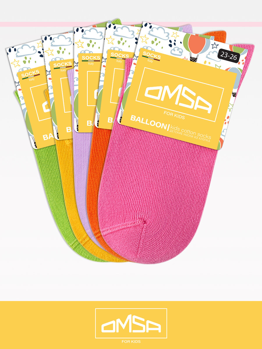 Носки детские OMSA kids Calzino 21C02, короткие, цветные, хлопок , набор 5 пар, цвет Erba/Giallo/Lilla/Orange/Rosa, размер 27/30 информация: