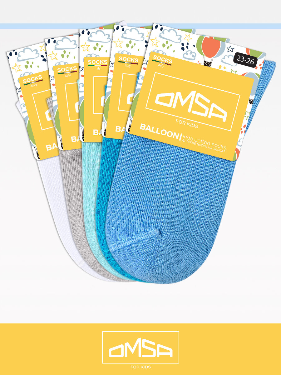 Носки детские OMSA kids Calzino 21C02, короткие, цветные, хлопок , набор 5 пар, цвет Bianco/Grigio Chiaro/Azzurro/Blu/Blu Сhiaro, размер 27/30 информация: