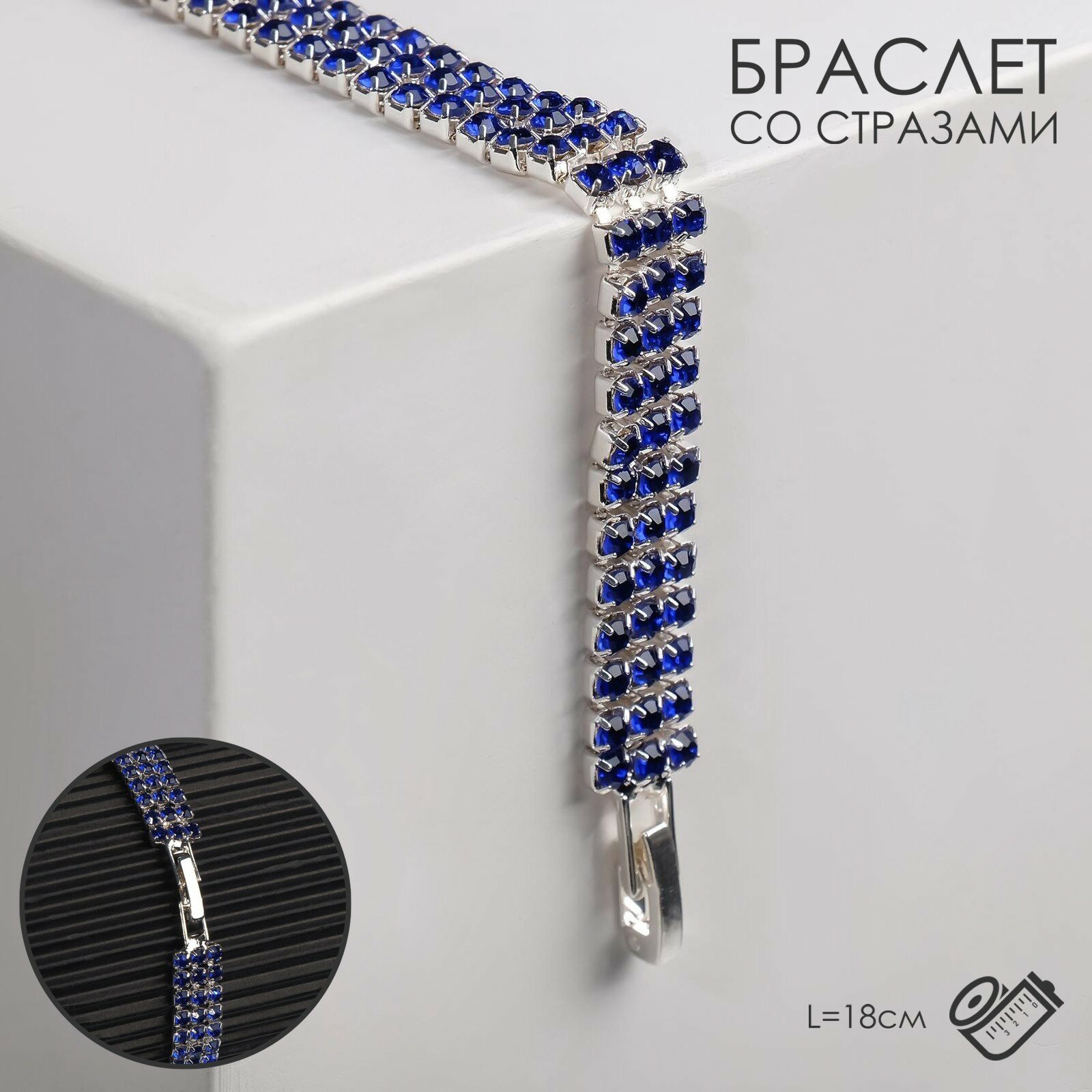 10 цен на Браслет со стразами "Сияй" три ряда, цвет синий в серебре, 18см