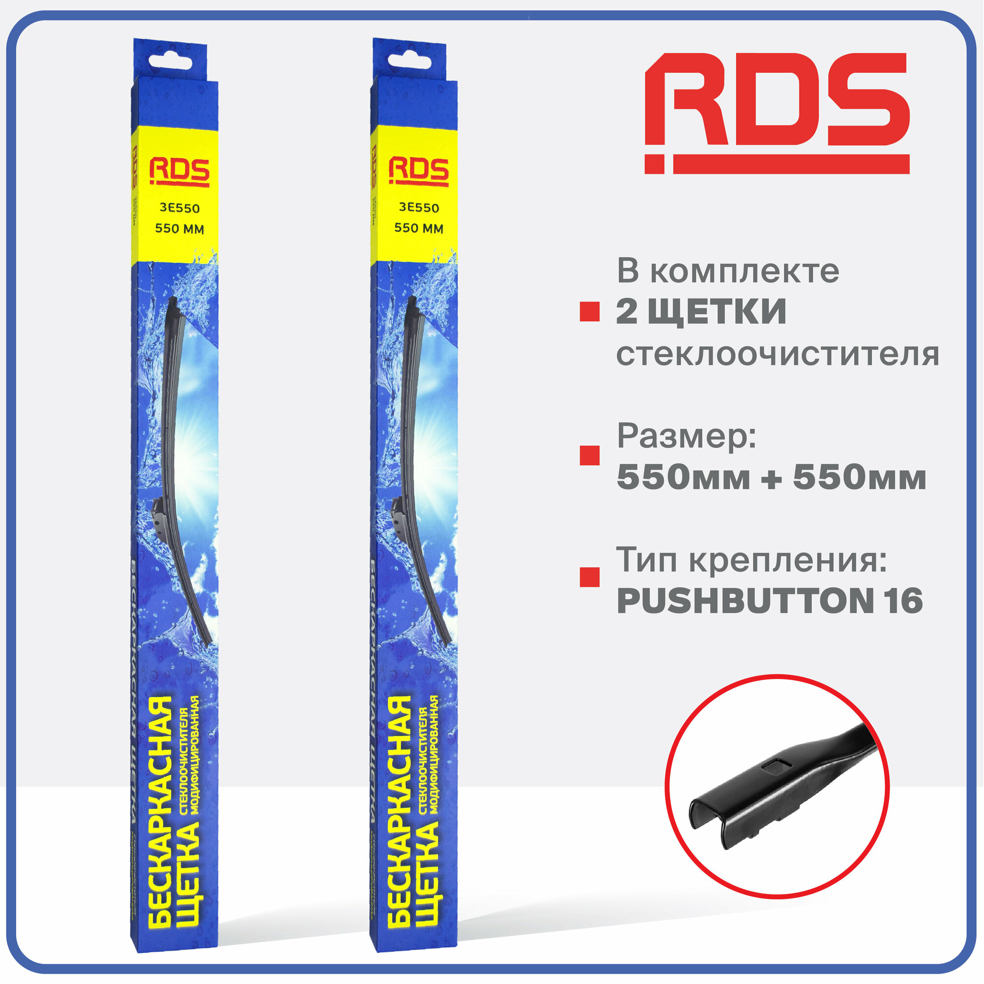 550 550 мм. Push Button 16 мм. Комплект бескаркасных щеток стеклоочистителя дворник RD5 на Land Rover Defender SW - Лэнд Ровер Дефендер СВ