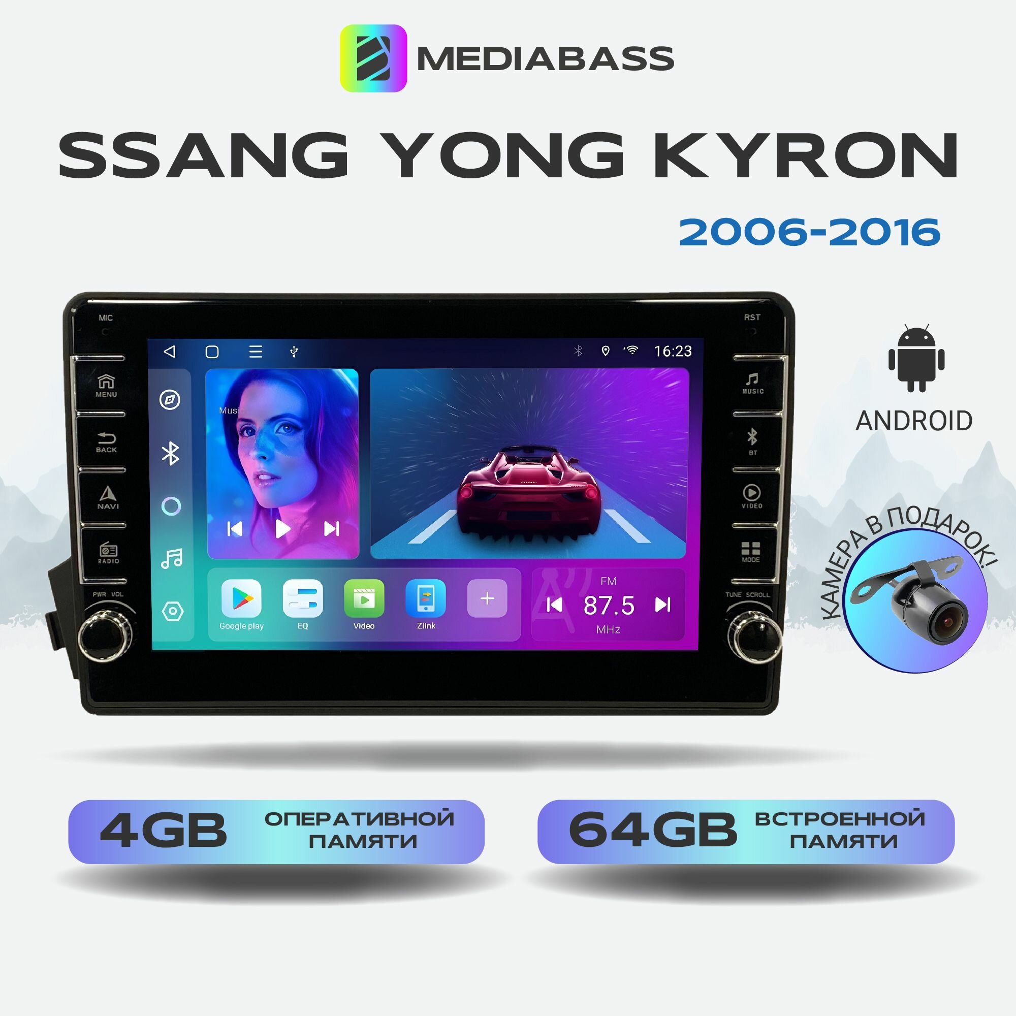 Автомагнитола Mediabass Ssang Yong Kyron, Android 13, 4/64ГБ, с крутилками / Санг Енг Кайрон + Переходная рамка информация: