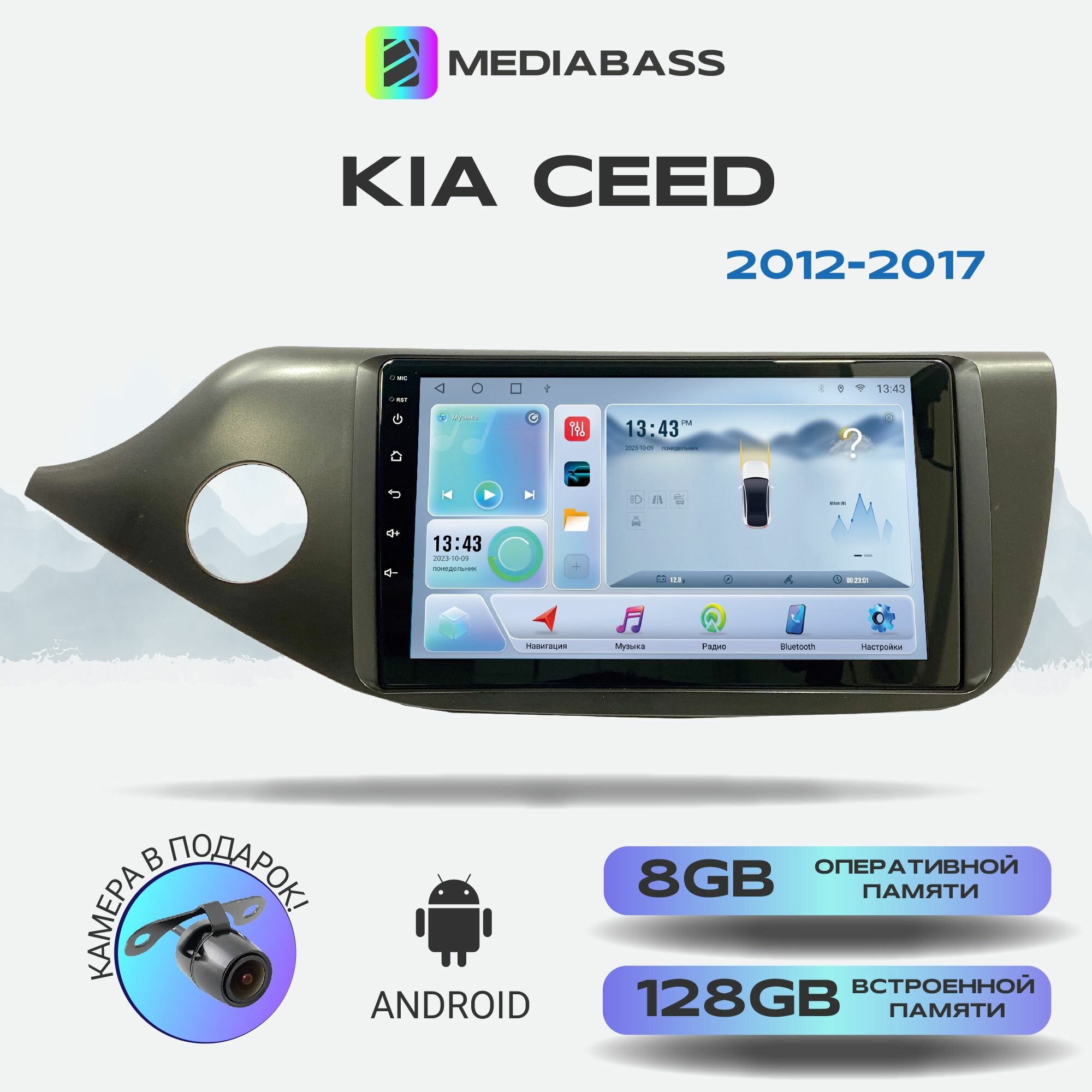 Автомагнитола Mediabass KIA Ceed 2012-2017, Android 12, 8/128ГБ, 8-ядерный процессор, DSP, 4G модем, голосовое управление, чип-усилитель TDA7851, 4G LTE / Киа Сид информация: