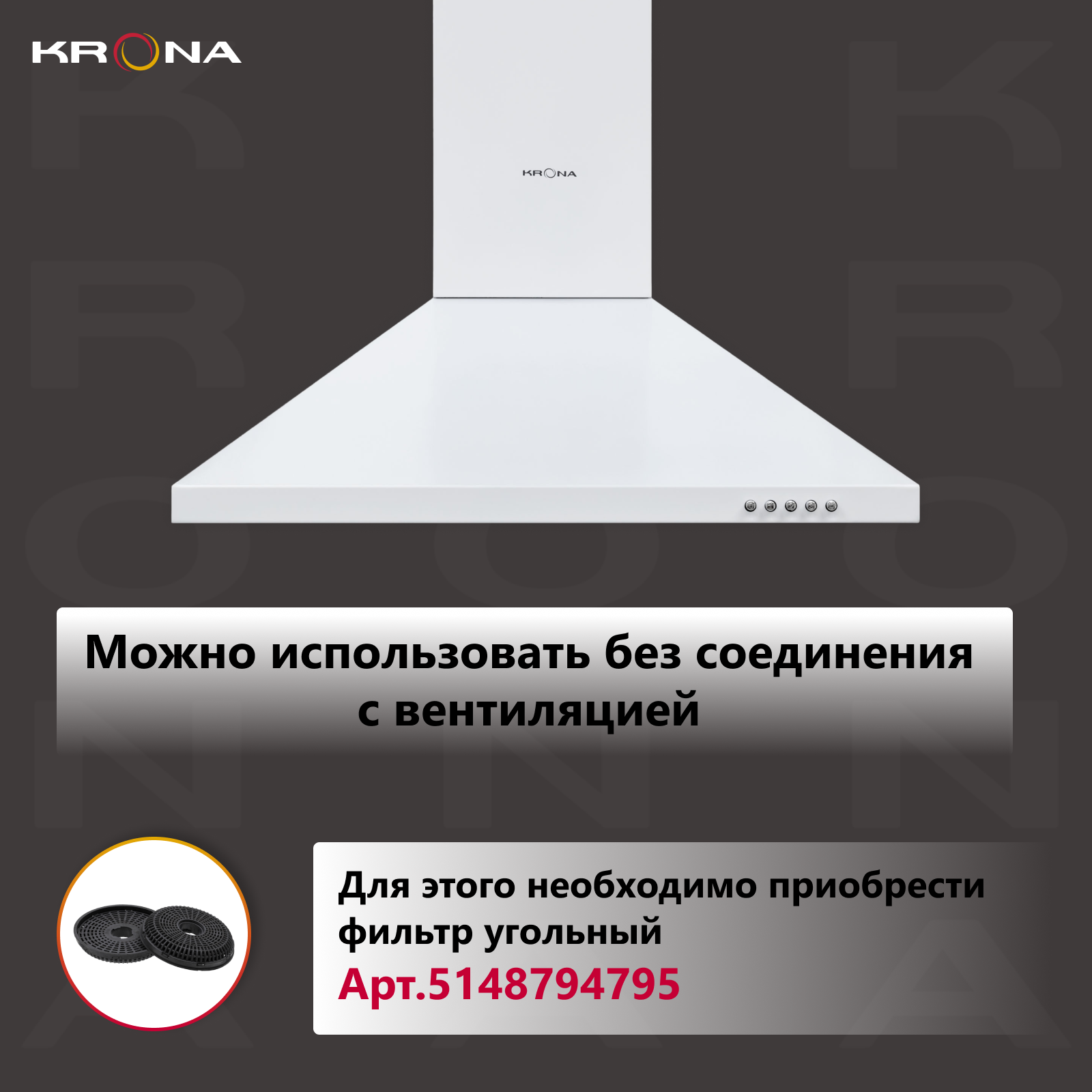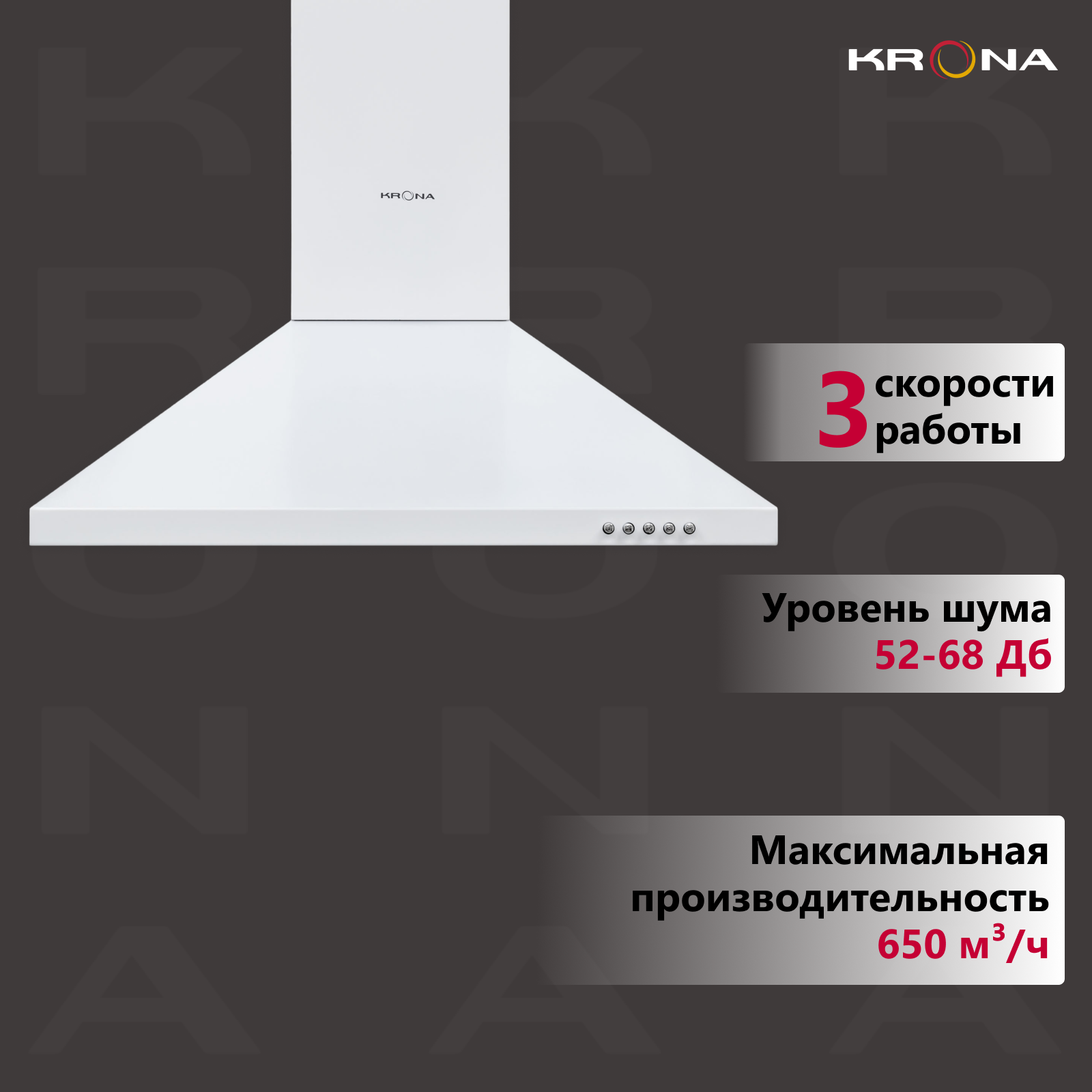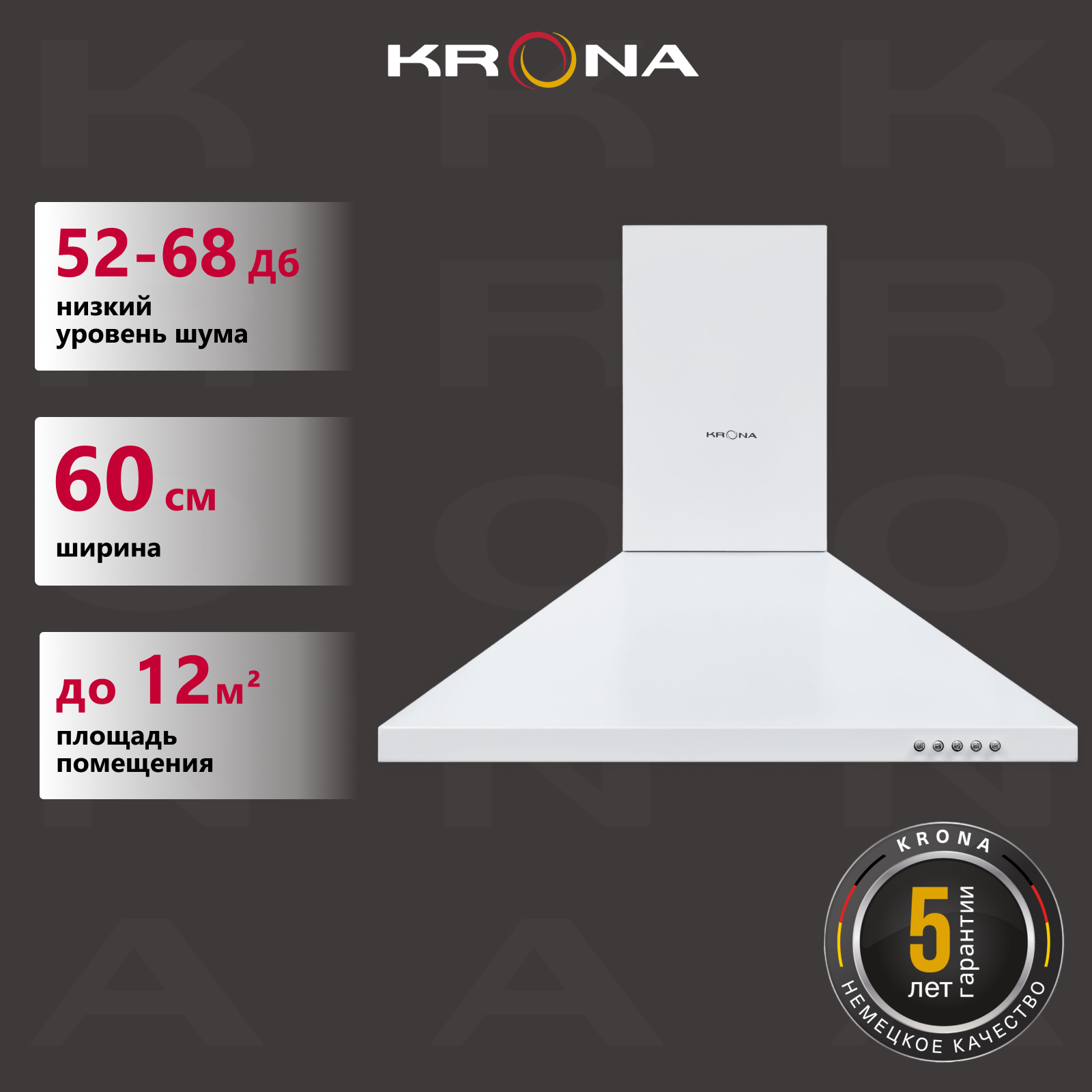 Вытяжка кухонная 60 см купольная KRONA BRIEF 600 WHITE PB информация: