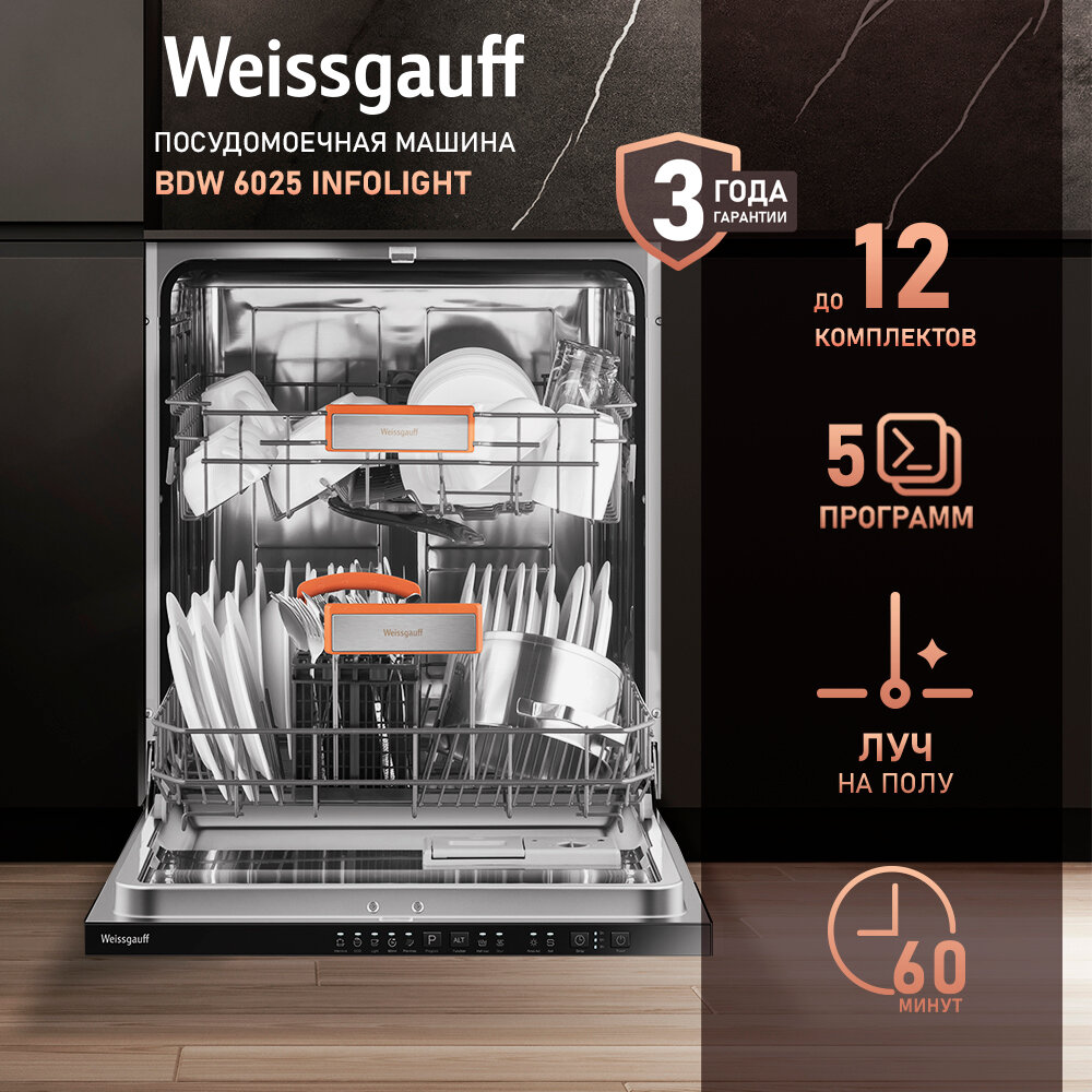 10 цен на Встраиваемая посудомоечная машина с лучом на полу Weissgauff BDW 6025 Infolight, защита от протечек