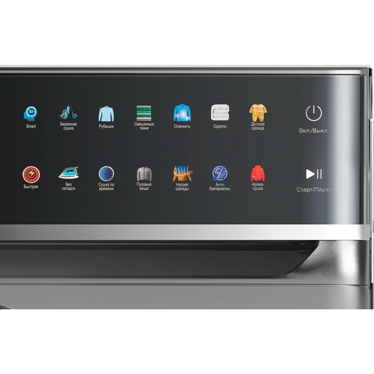 | Дополнительные функции | контроль влажности / отложенный старт / реверсивное вращение барабана / сбор конденсата / установка времени завершения стирки / установка продолжительности программы |