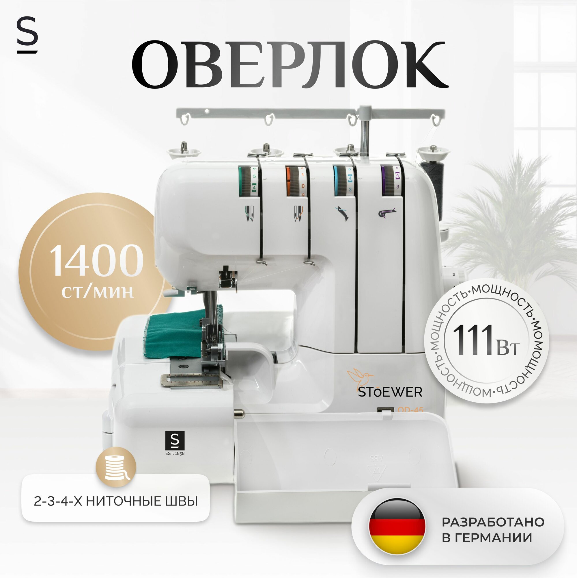 Оверлок Stoewer Штоер OD-45 для всех типов тканей, скорость шитья 1400 ст/мин информация: