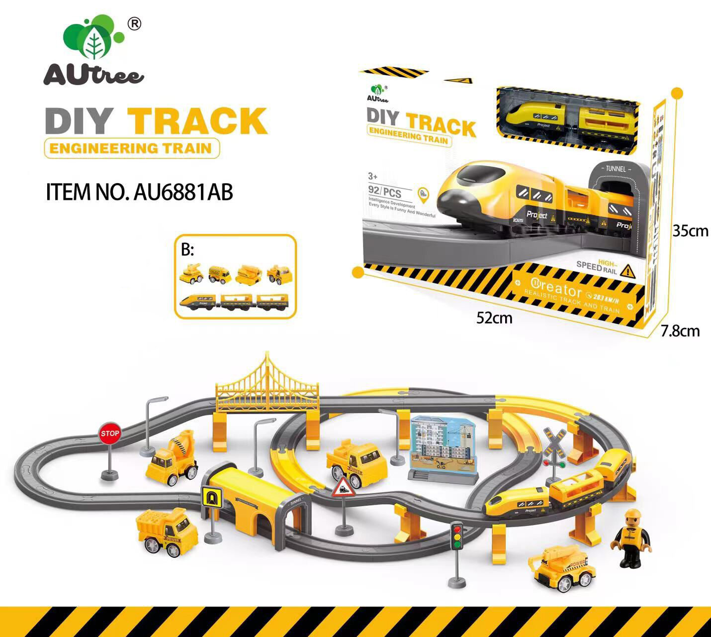 Двухуровневая железная дорога c электропоездом, машинками и аксессуарами Engineering Train Строители, 92 детали Жёлтый информация: