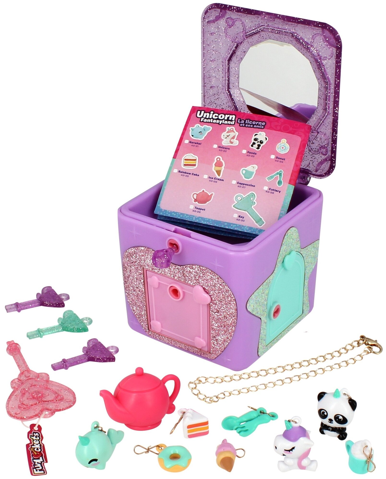 Игровой набор 1TOY Шкатулка с секретами Funlockets, набор с замком и ключами в ассортименте (8х10х9 см). 20+ сюрпризов. Фанлокетс. информация: