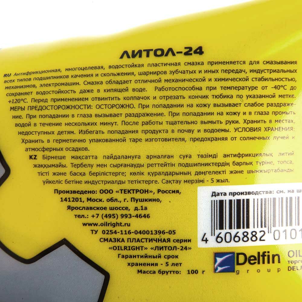 OILRIGHT Пластичная Смазка Литол-24 100 г в тубе 6001 информация: