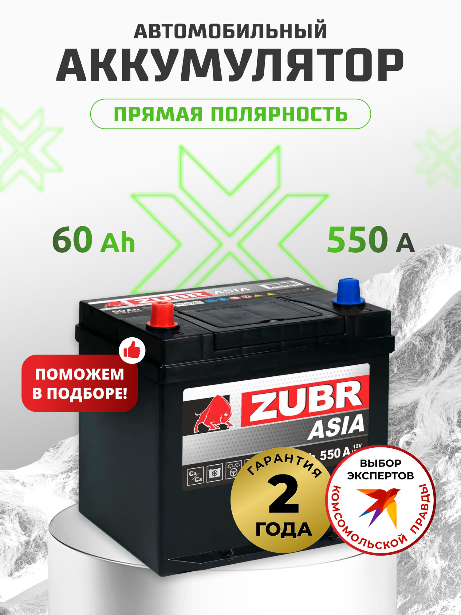 Отзывы на Аккумулятор автомобильный ZUBR Ultra Asia (нижний борт) 60 Ah 550 A прямая полярность 230x175x225